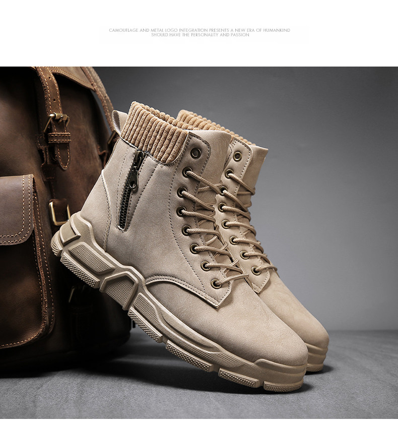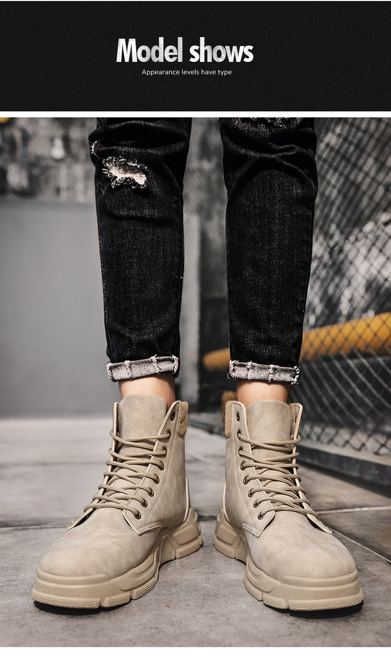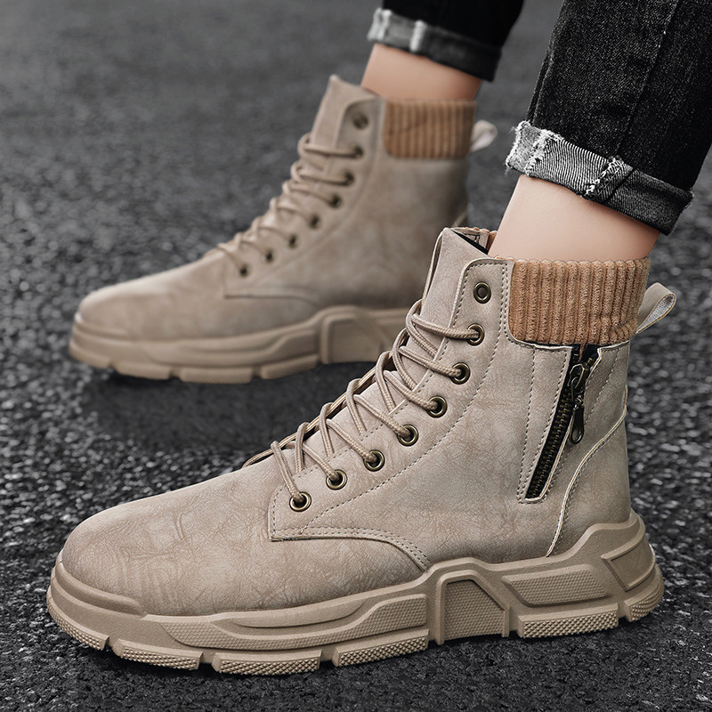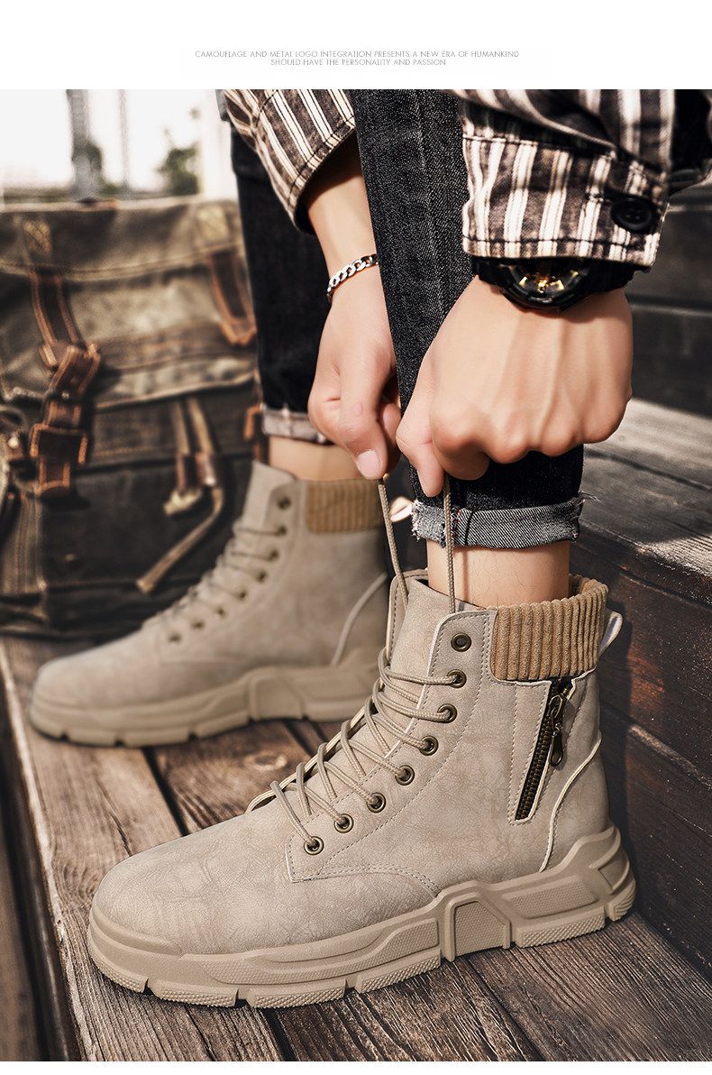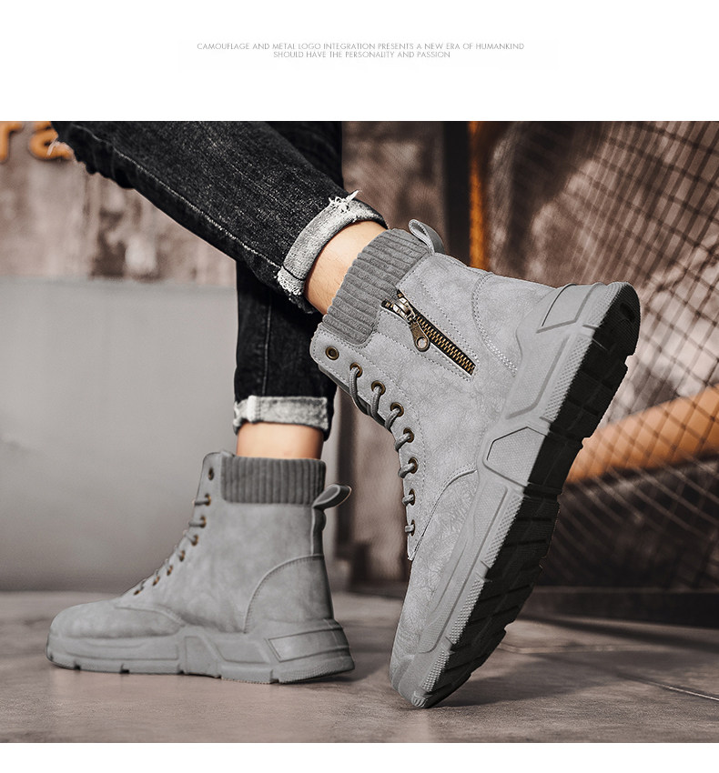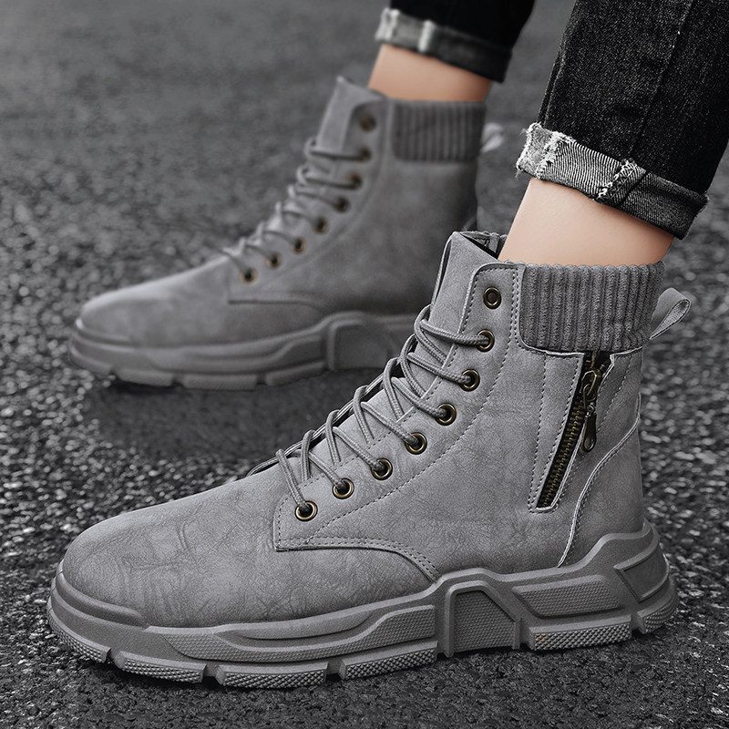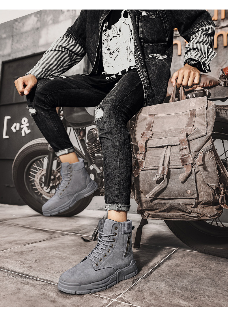 秋冬季新款马丁靴男鞋复古八孔工作潮鞋男士防滑英伦风灰色工装靴