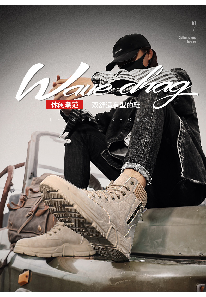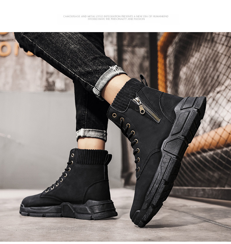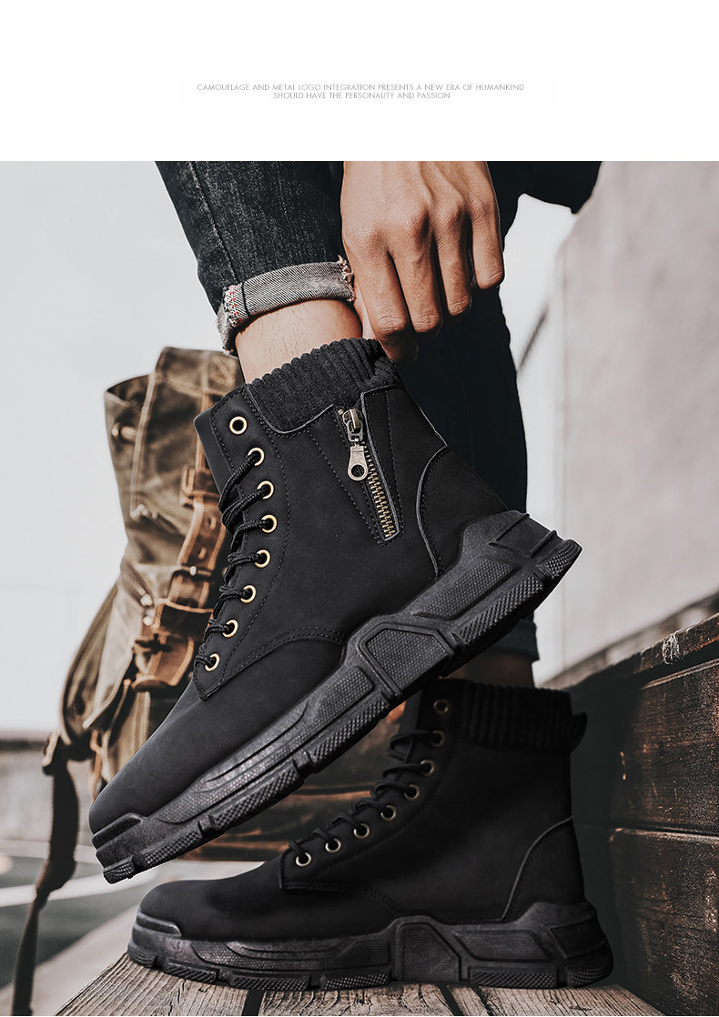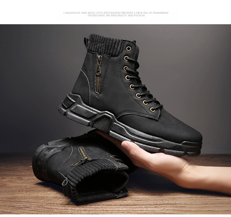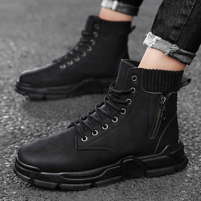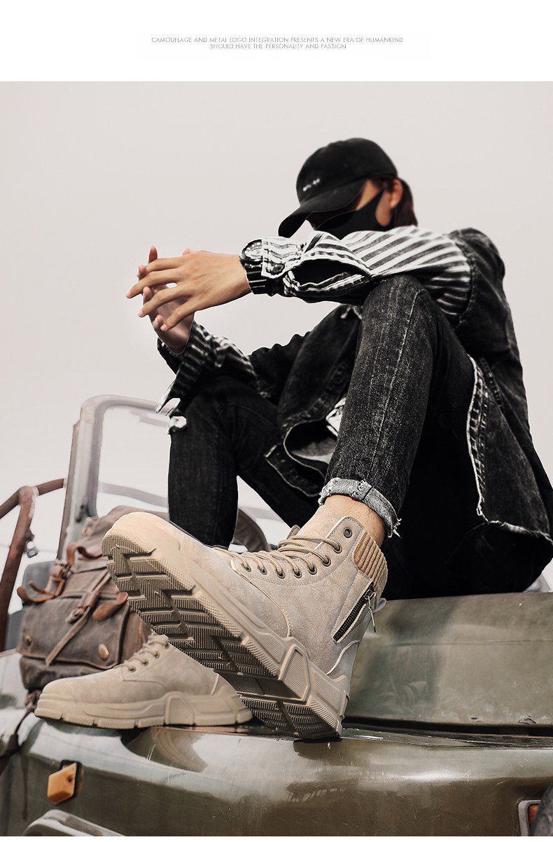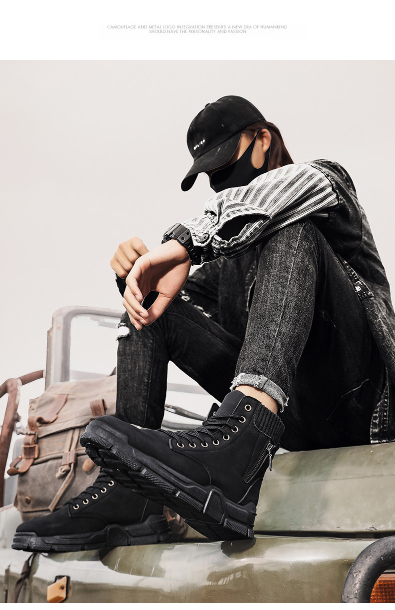 秋冬季新款马丁靴男鞋复古八孔工作潮鞋男士防滑英伦风灰色工装靴