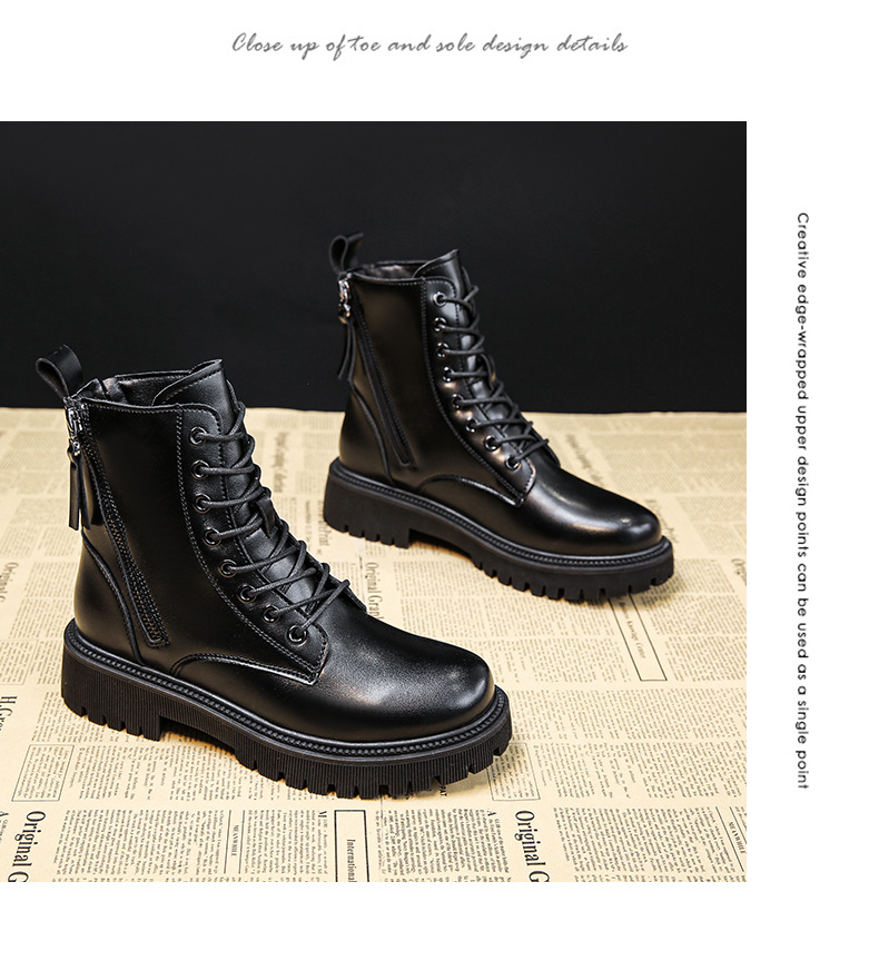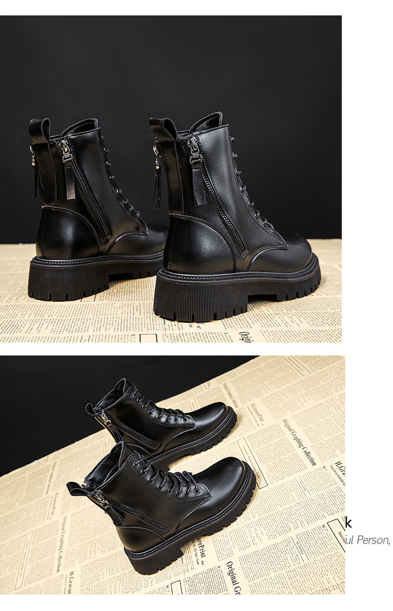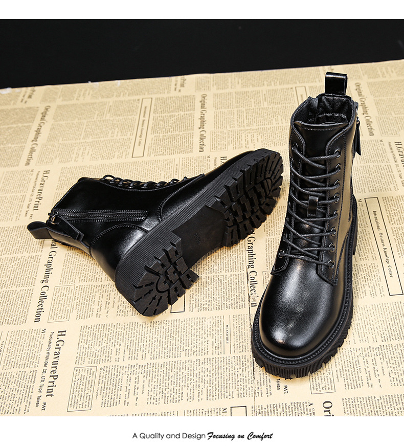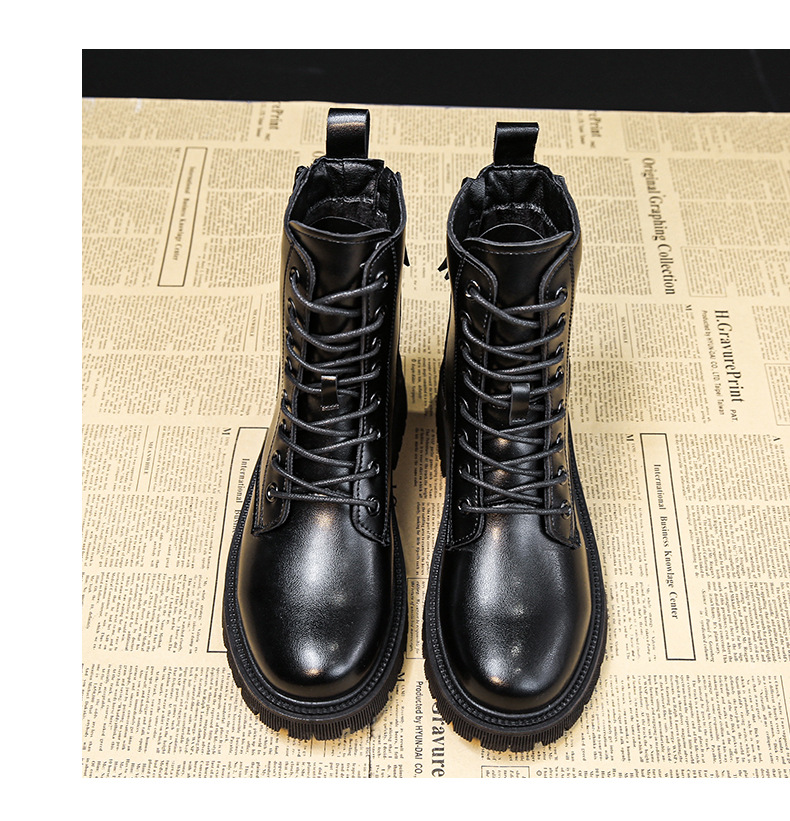 四季新款黑色厚底炸街马丁靴高帮女士皮靴跨境外贸批发一件代发