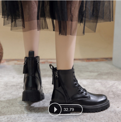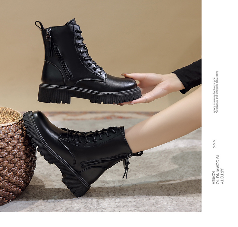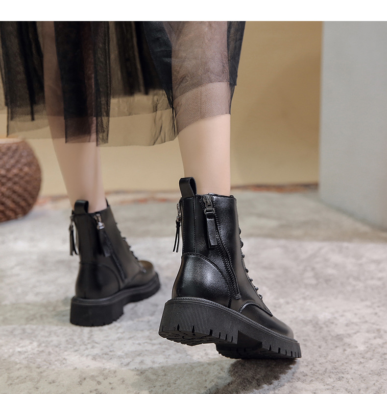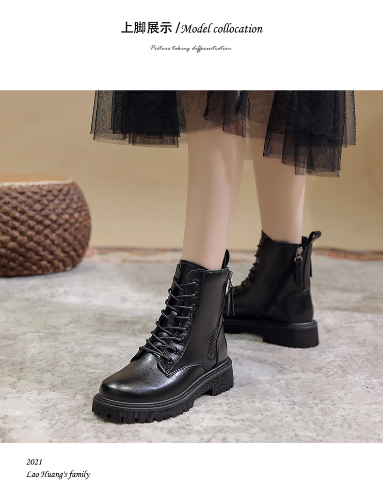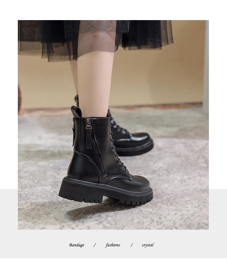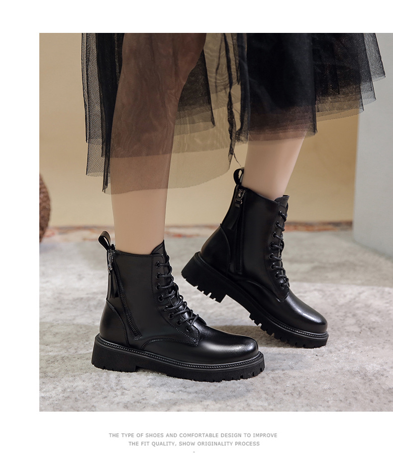 四季新款黑色厚底炸街马丁靴高帮女士皮靴跨境外贸批发一件代发