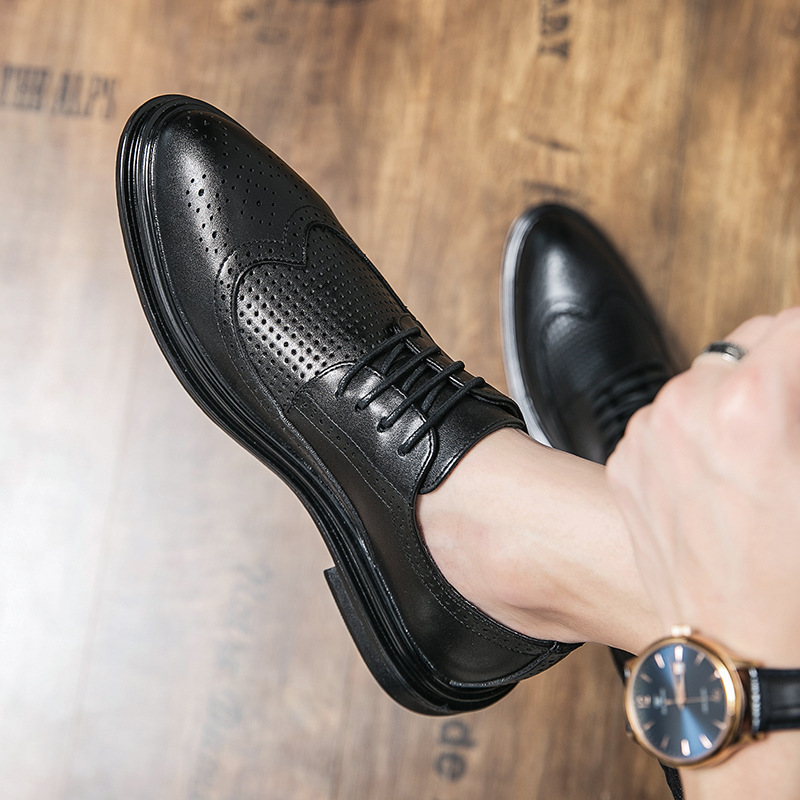 2022夏季新款批发镂空皮鞋男款大码商务布洛克厚底男透气休闲男鞋