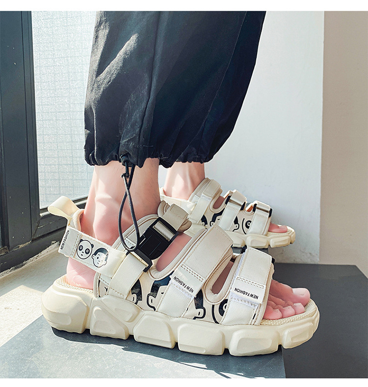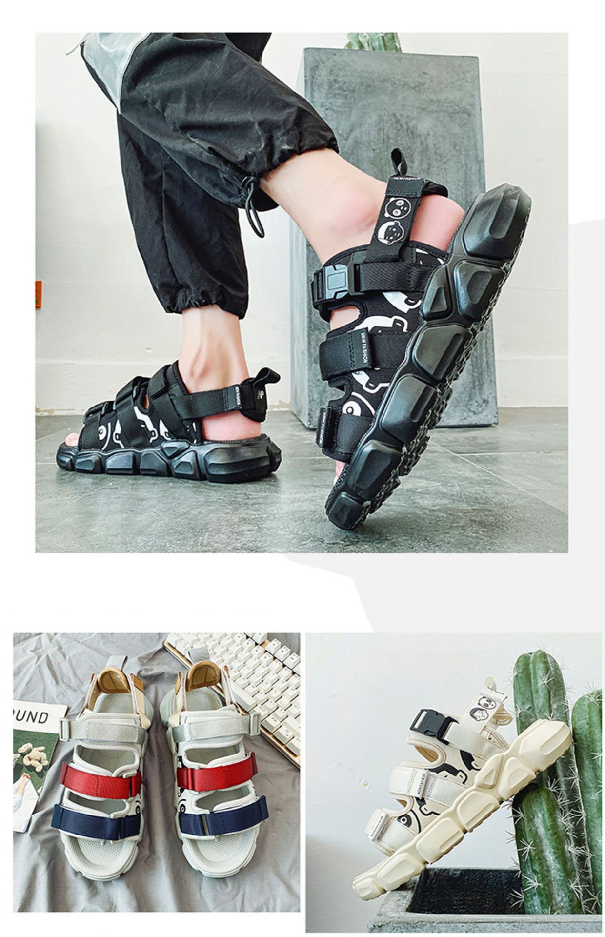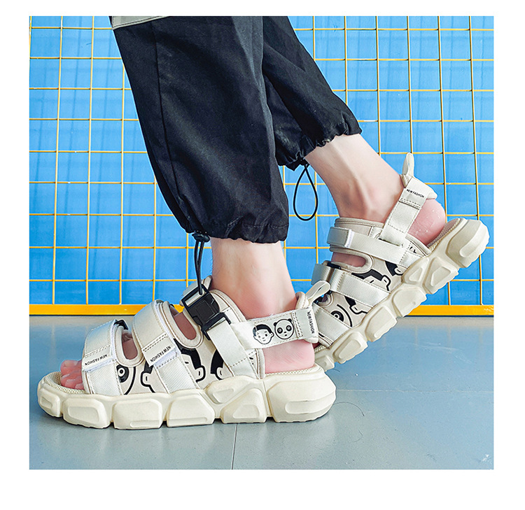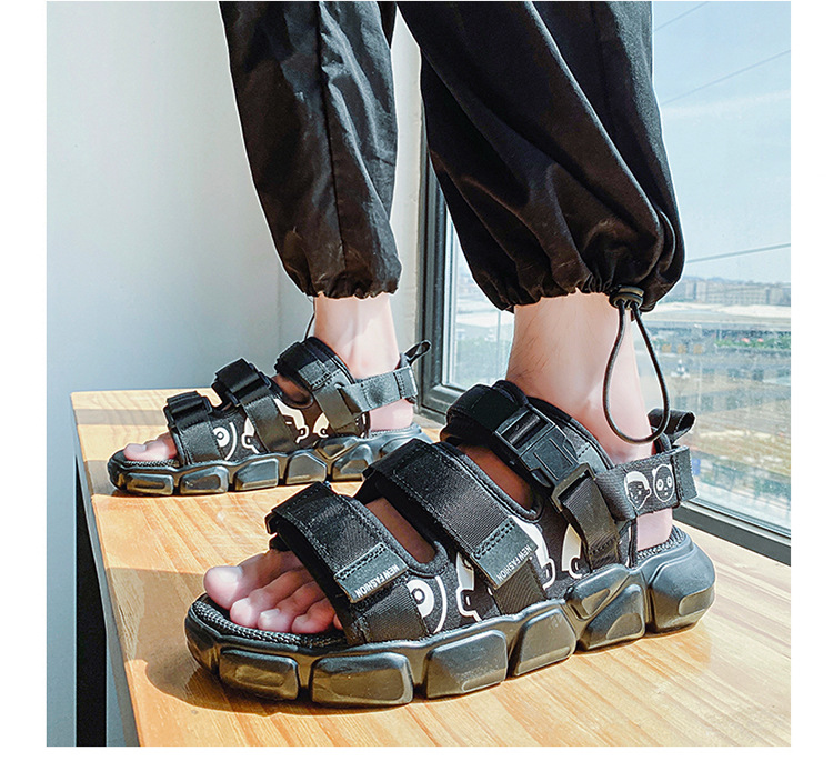 2022夏季休闲透气男鞋时尚厚底潮流凉拖鞋青少中学生年个性沙滩鞋
