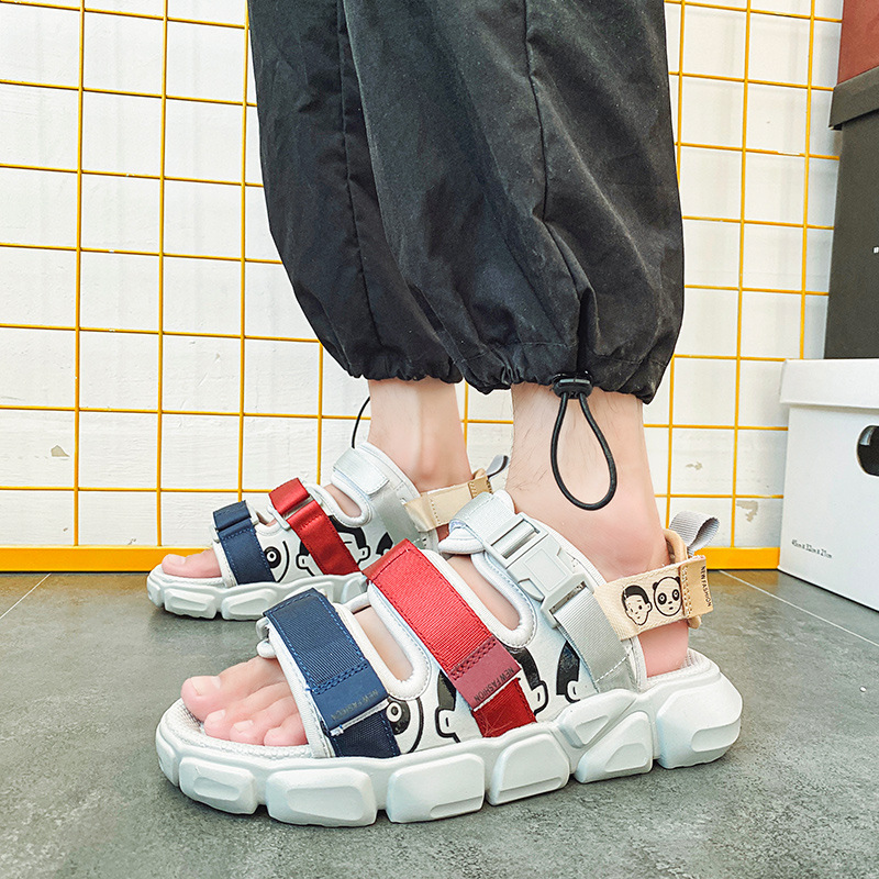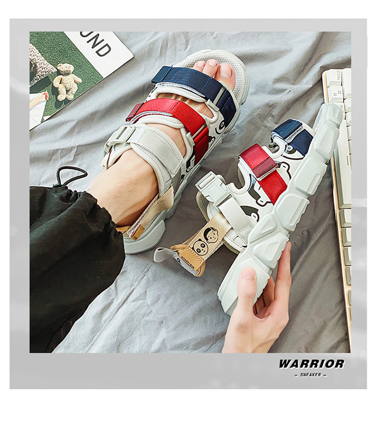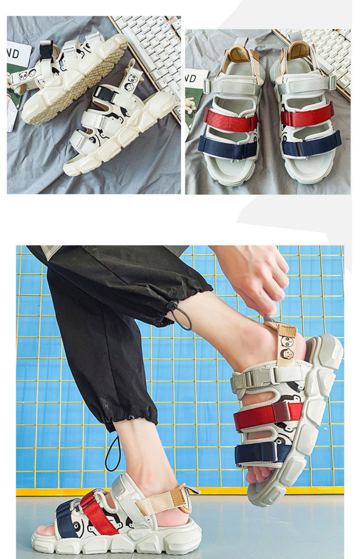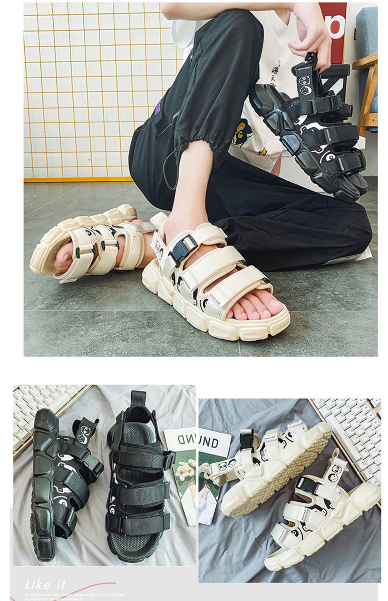 2022夏季休闲透气男鞋时尚厚底潮流凉拖鞋青少中学生年个性沙滩鞋