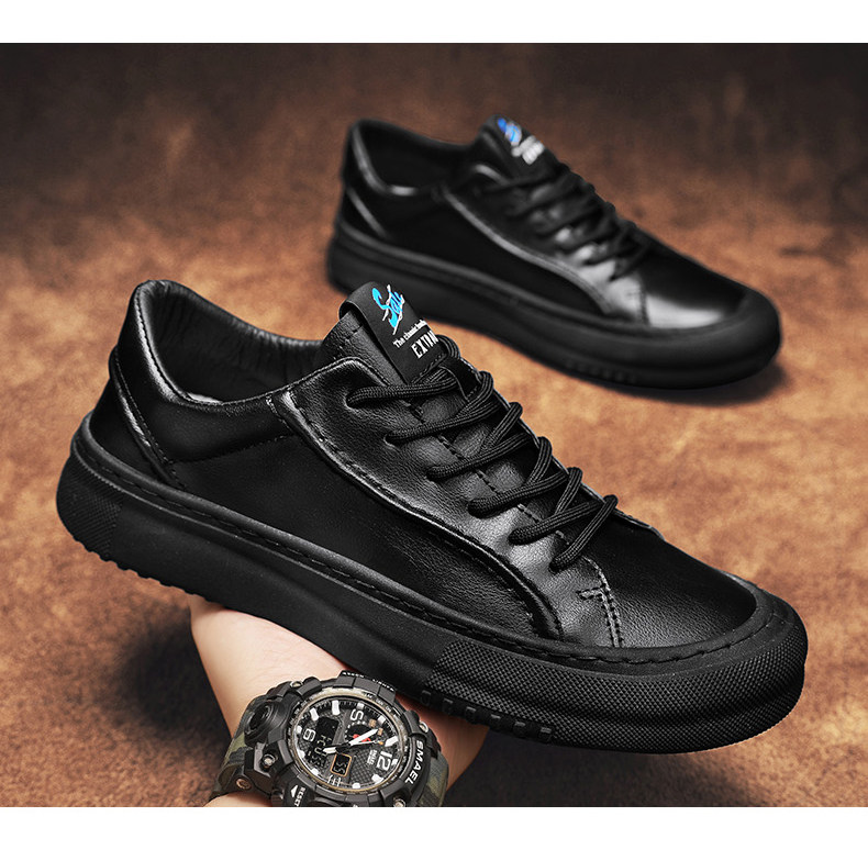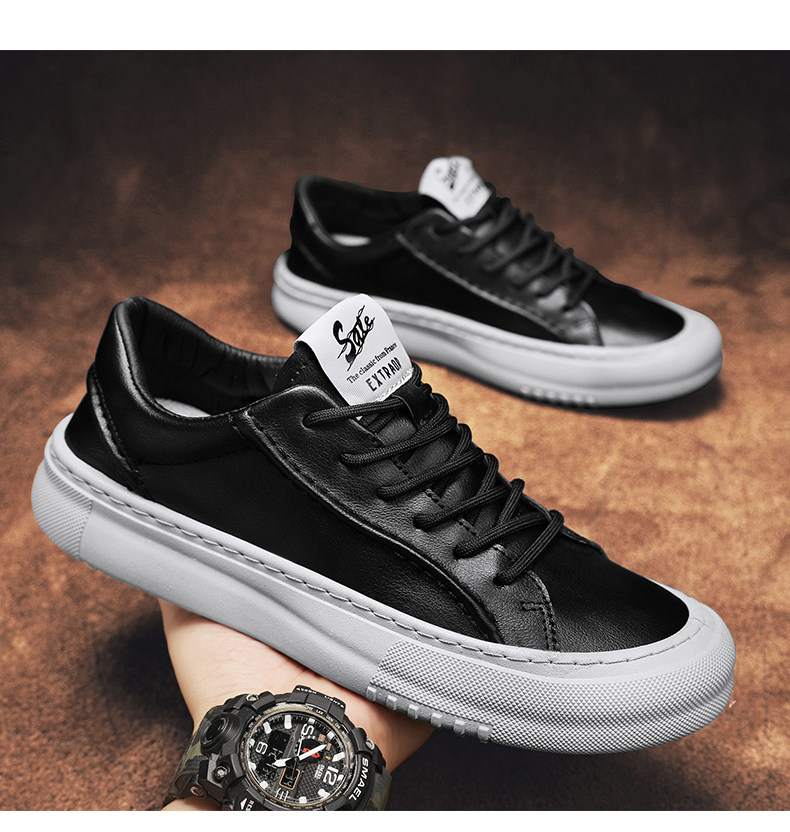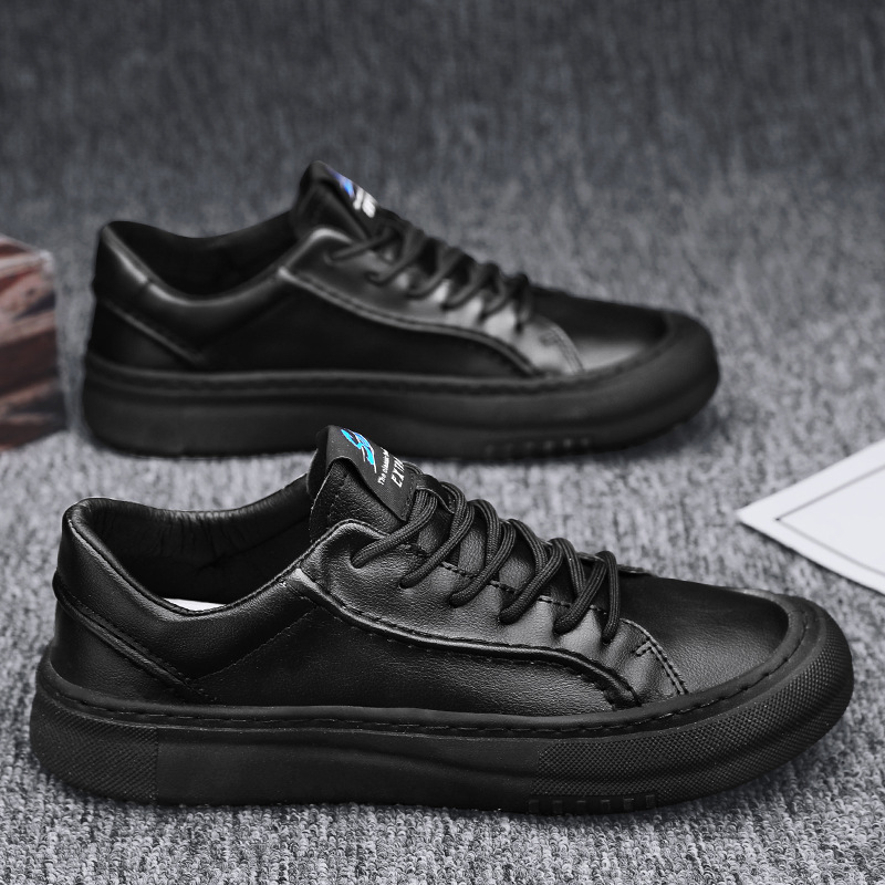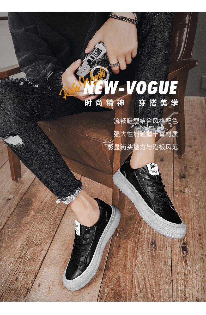秋季男鞋2022年新款休闲皮鞋一脚蹬运动板鞋百搭工作防水小白潮鞋