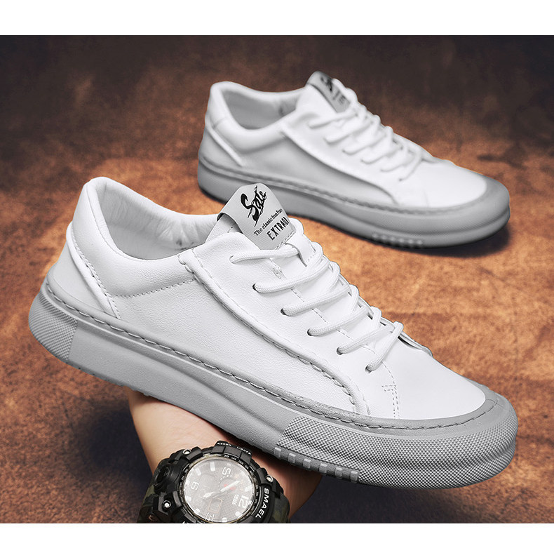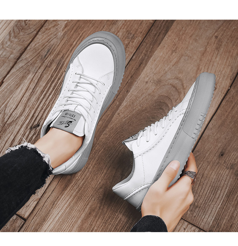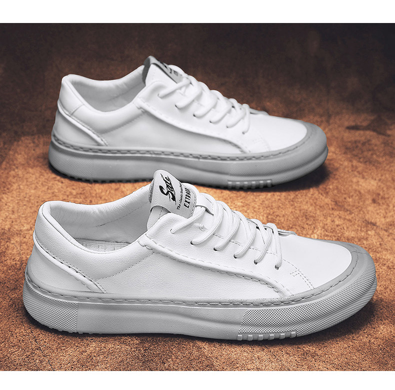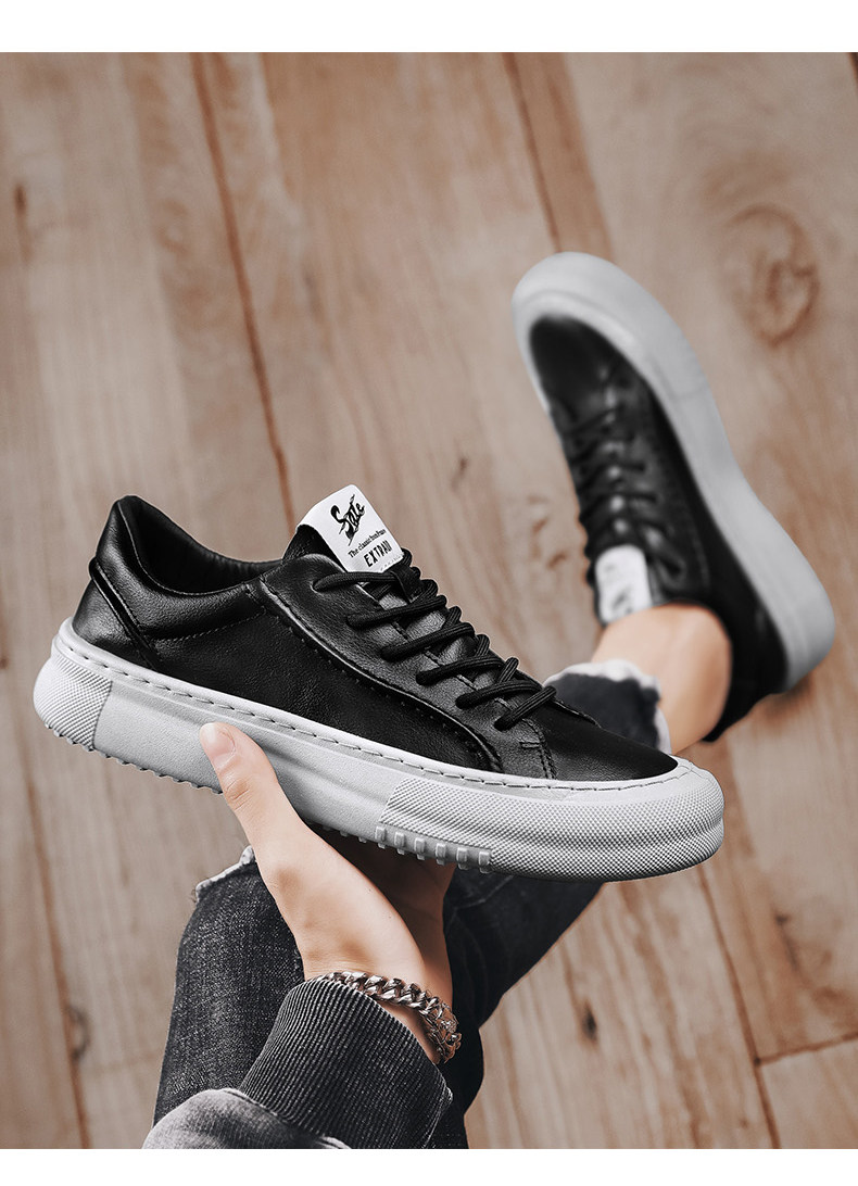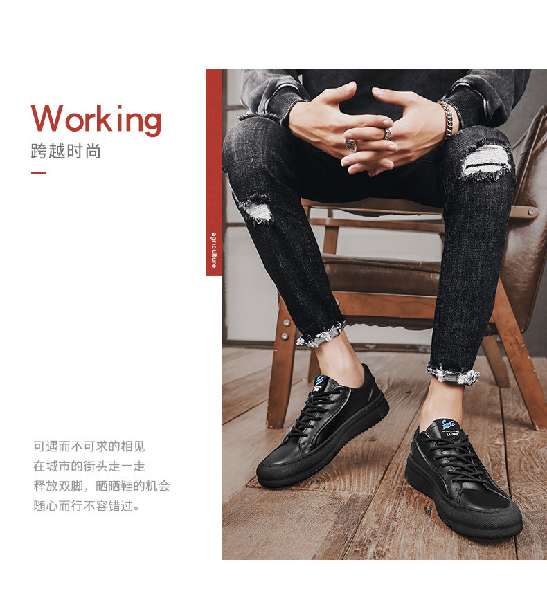 秋季男鞋2022年新款休闲皮鞋一脚蹬运动板鞋百搭工作防水小白潮鞋