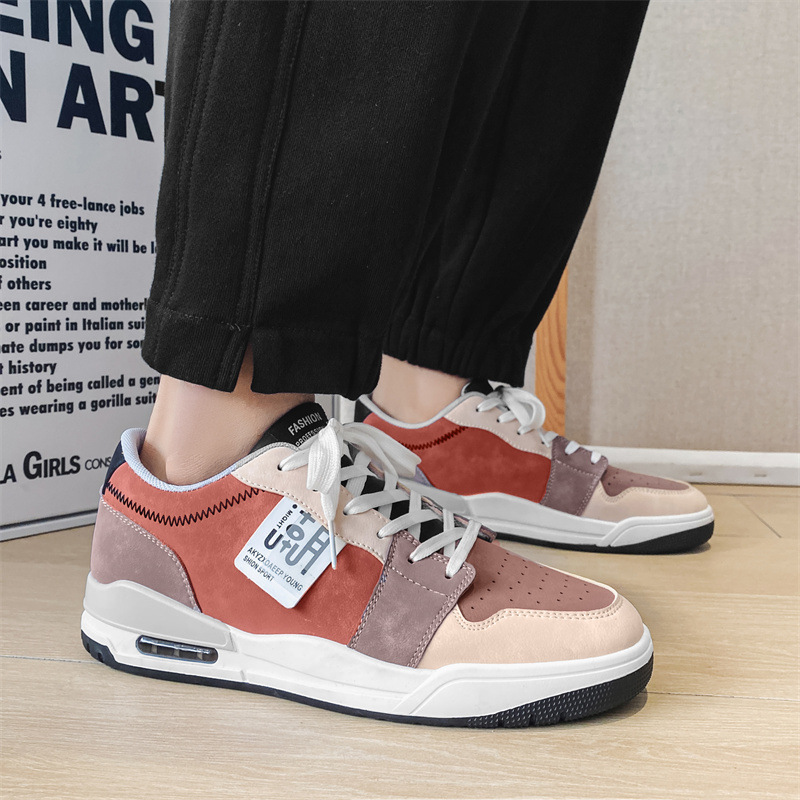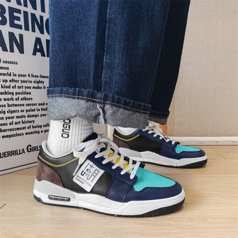 韩版潮流皮革拼接休闲鞋厚底撞色青年日常穿搭板鞋春季新品男鞋子