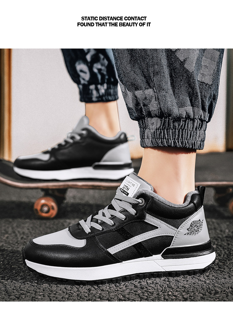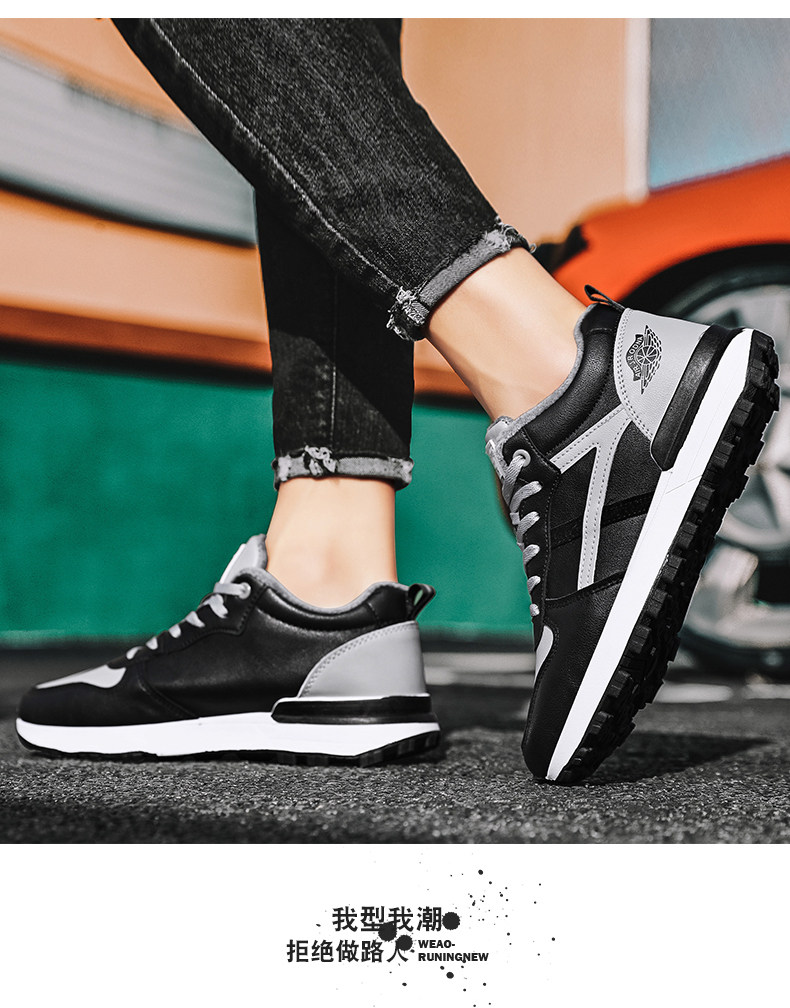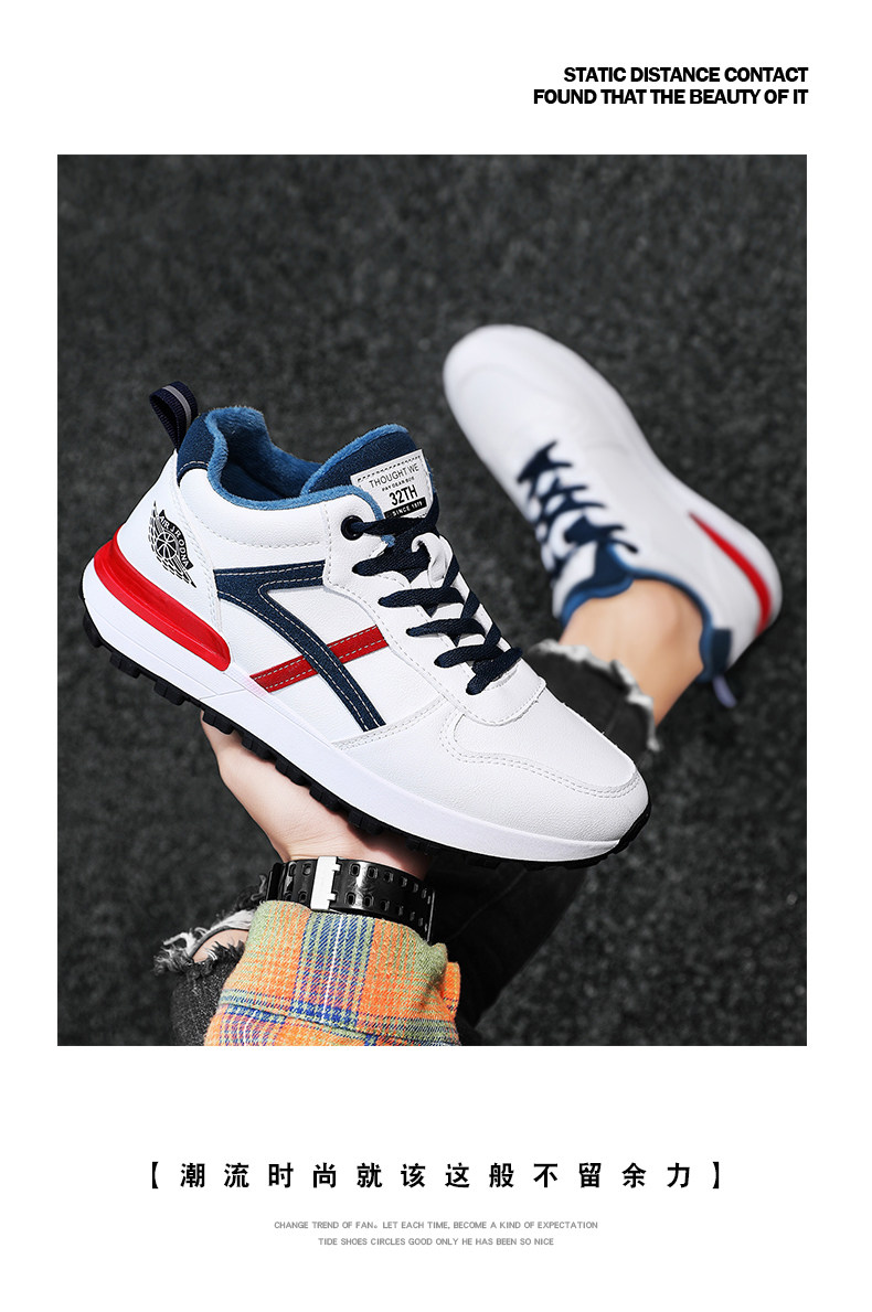男鞋冬季皮面运动阿甘鞋百搭潮流加绒保暖棉鞋防水男士休闲旅游鞋
