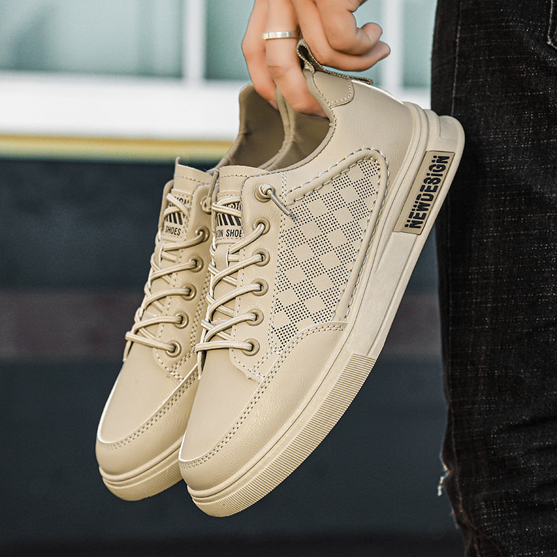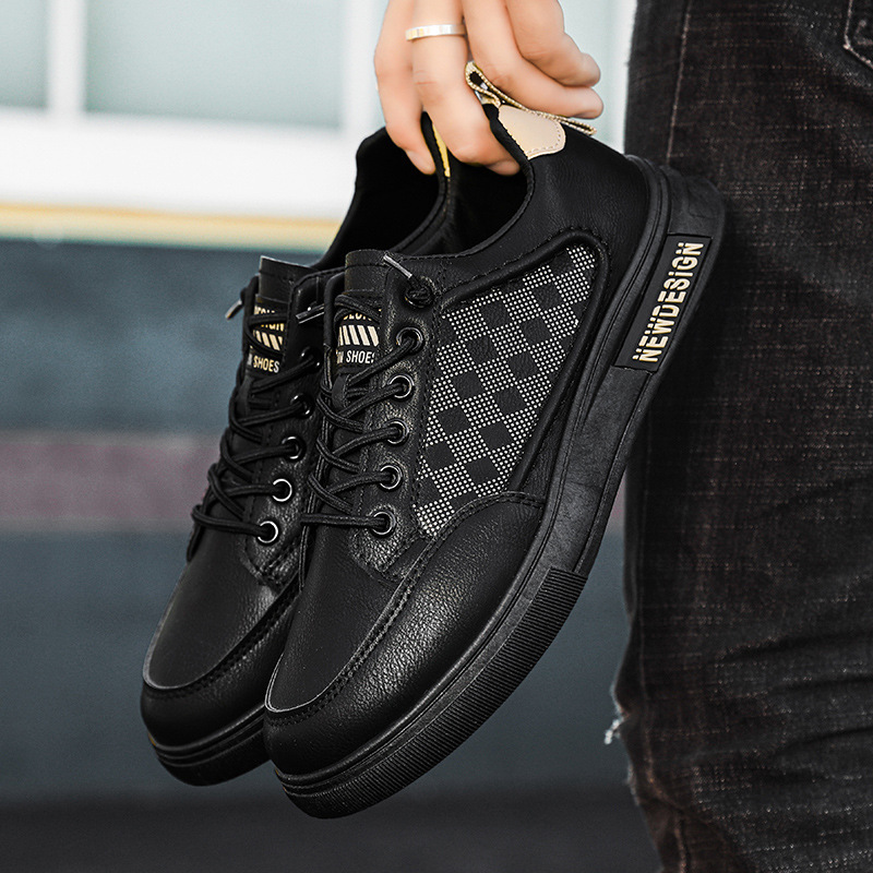 2022跨境男鞋年秋季新款透气皮面免系带休闲低帮板鞋男士批发潮鞋
