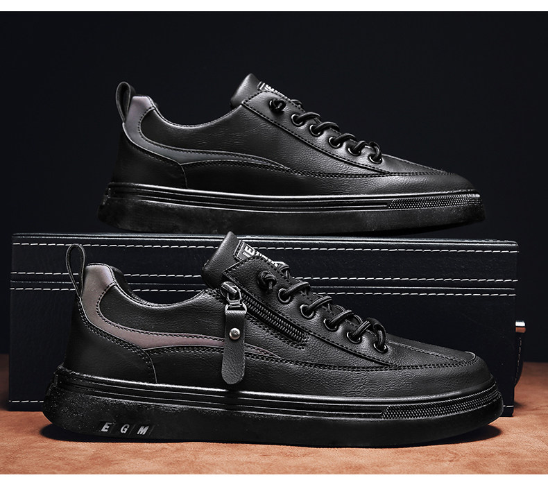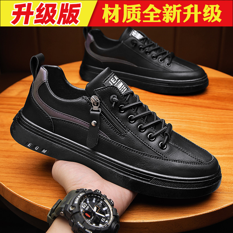 厨师鞋男秋季厨房上班干活专用休闲皮鞋防滑防水板鞋运动工作潮鞋