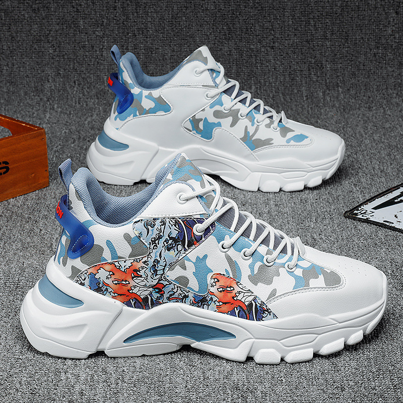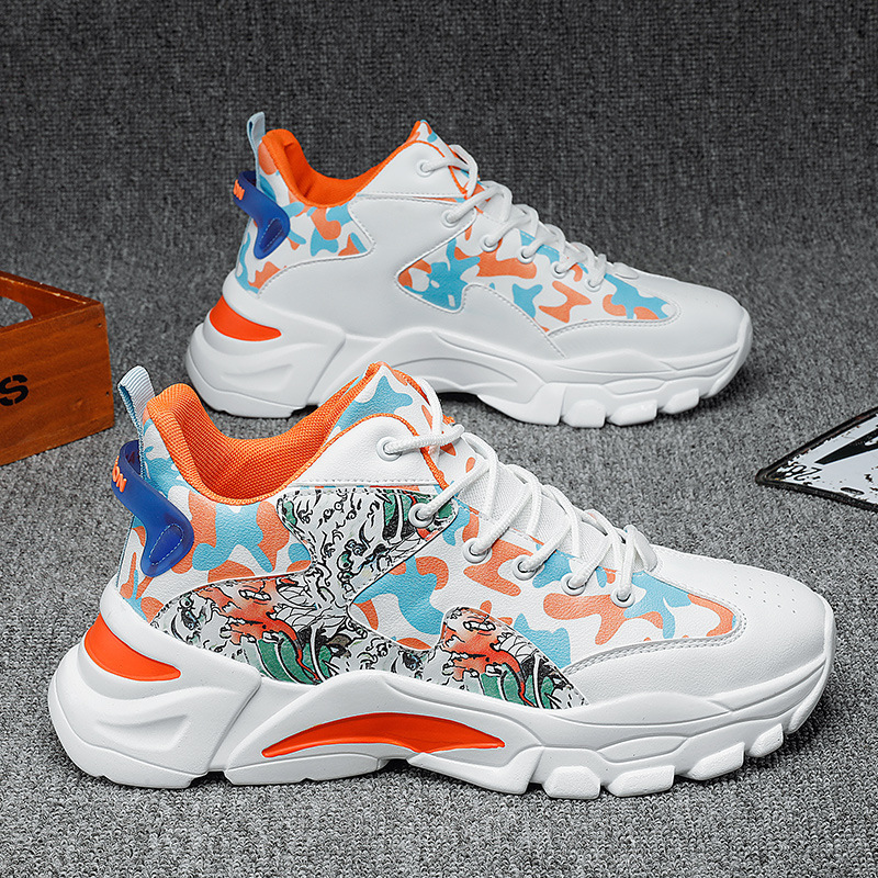 2022秋季新款男士高帮运动鞋潮青少年学生老爹鞋百搭休闲皮面男鞋