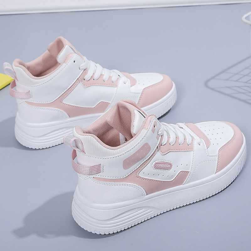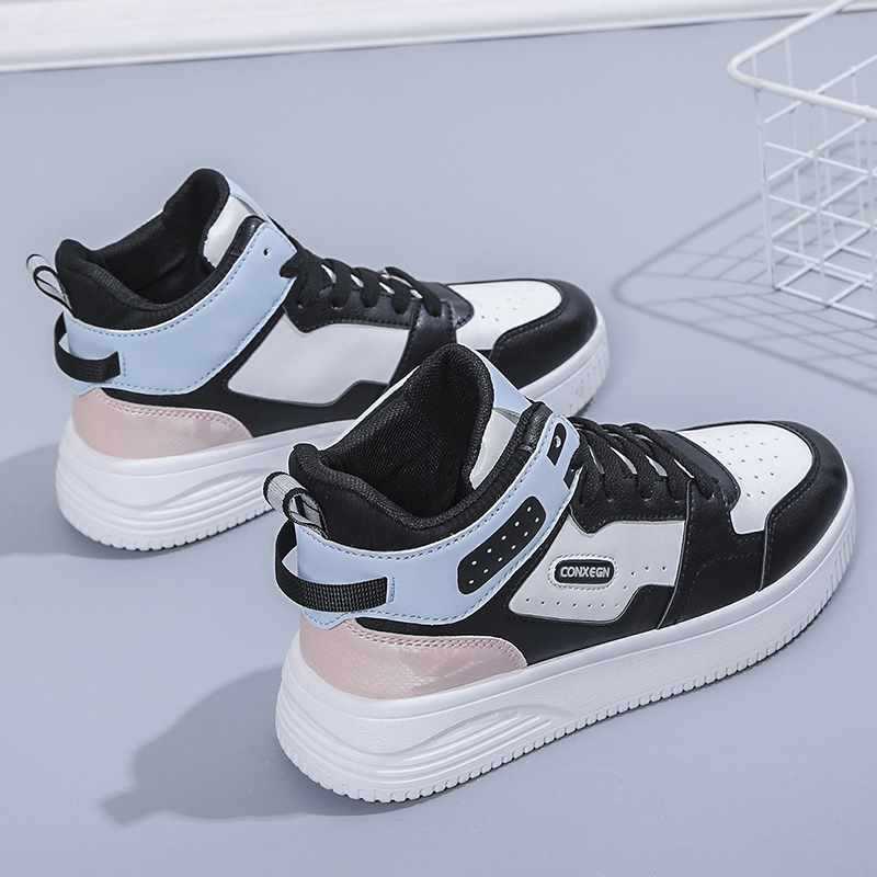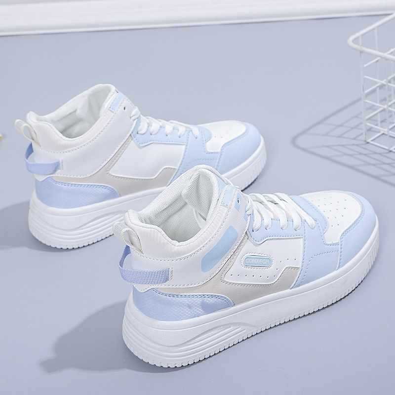ins韩版高帮小白鞋女2022秋季新款学生板鞋厚底松糕鞋系带休闲鞋