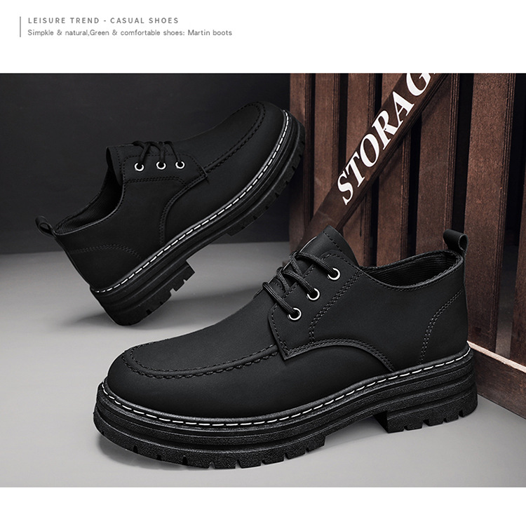 西装男鞋秋冬季英伦商务正装黑色新郎结婚休闲皮鞋男士低帮马丁靴