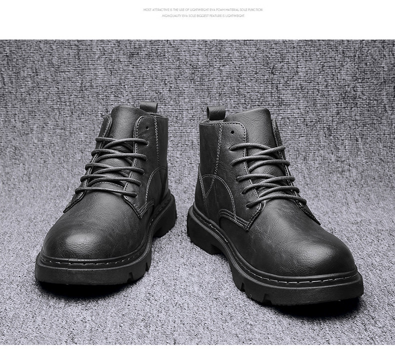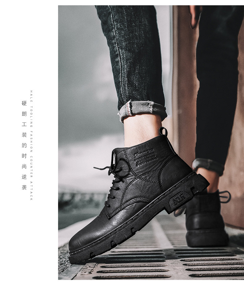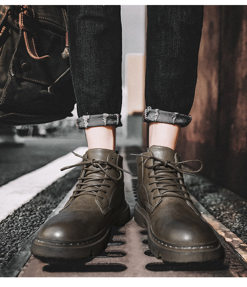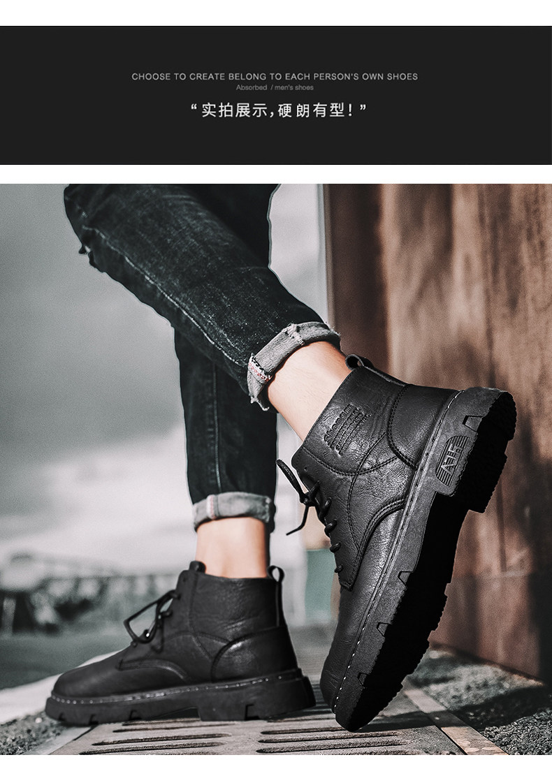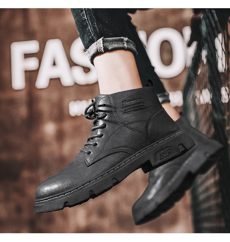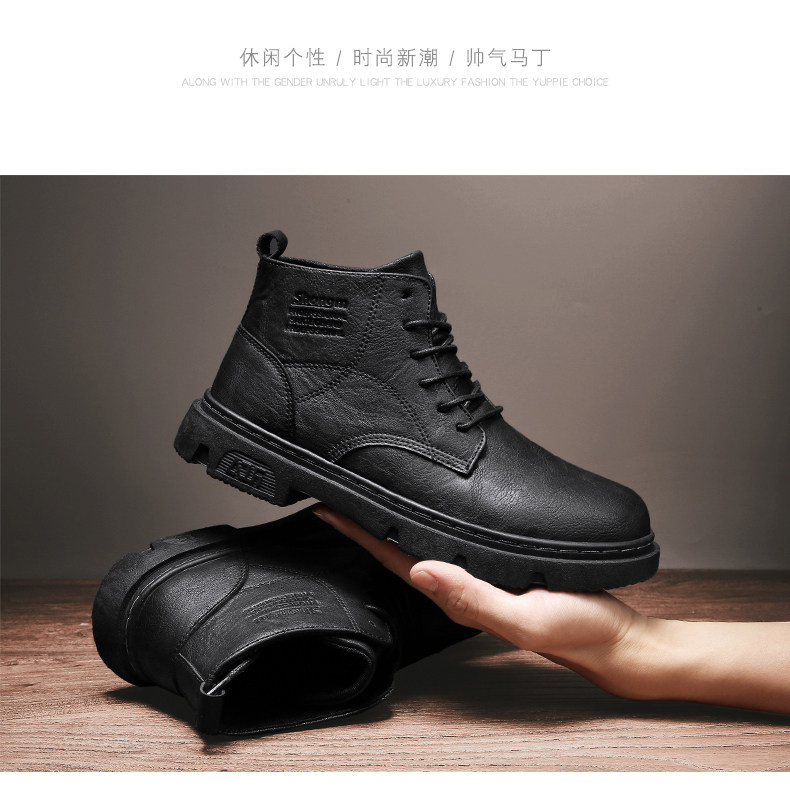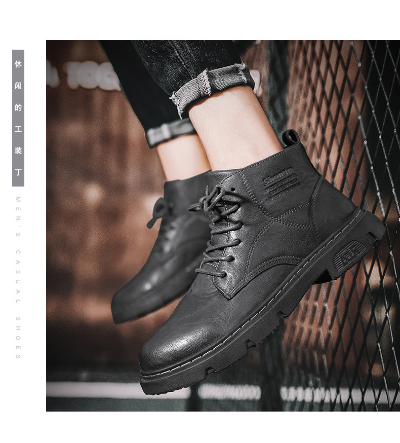 马丁靴男秋季休闲英伦风复古黑色男鞋2022新款高帮男士机车工装靴