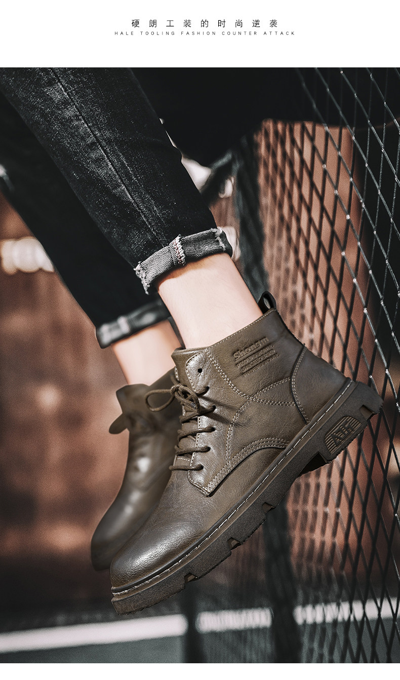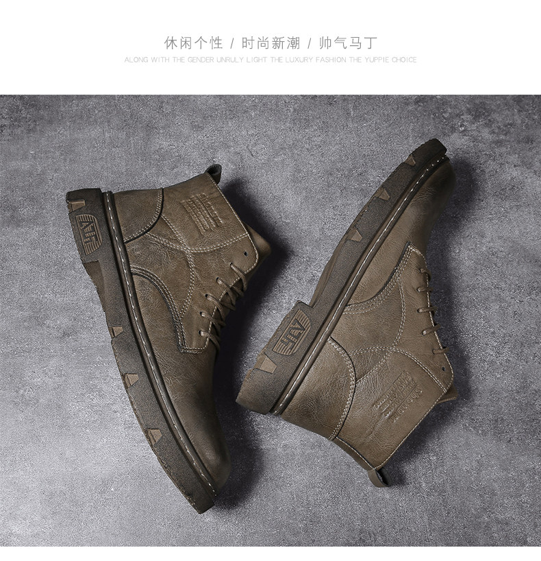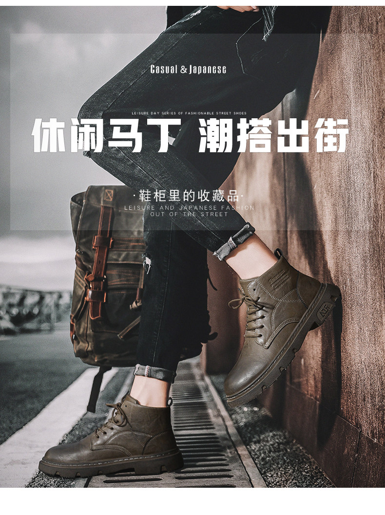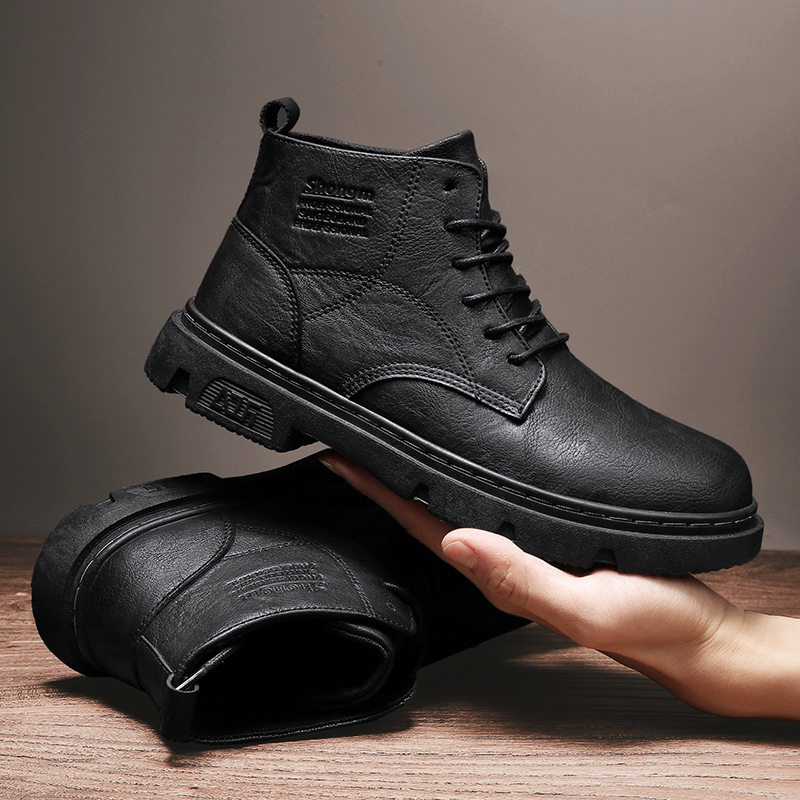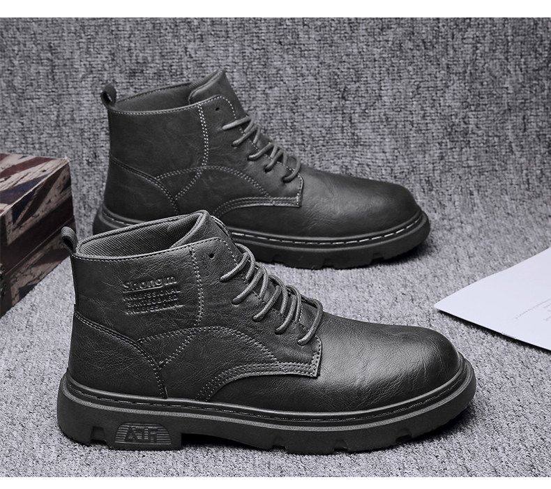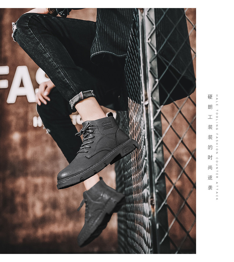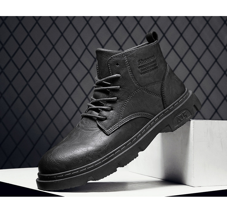 马丁靴男秋季休闲英伦风复古黑色男鞋2022新款高帮男士机车工装靴