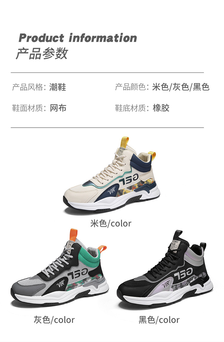 高帮男鞋秋季2022年跨境新款韩版潮流百搭运动休闲厚底老爹潮鞋男