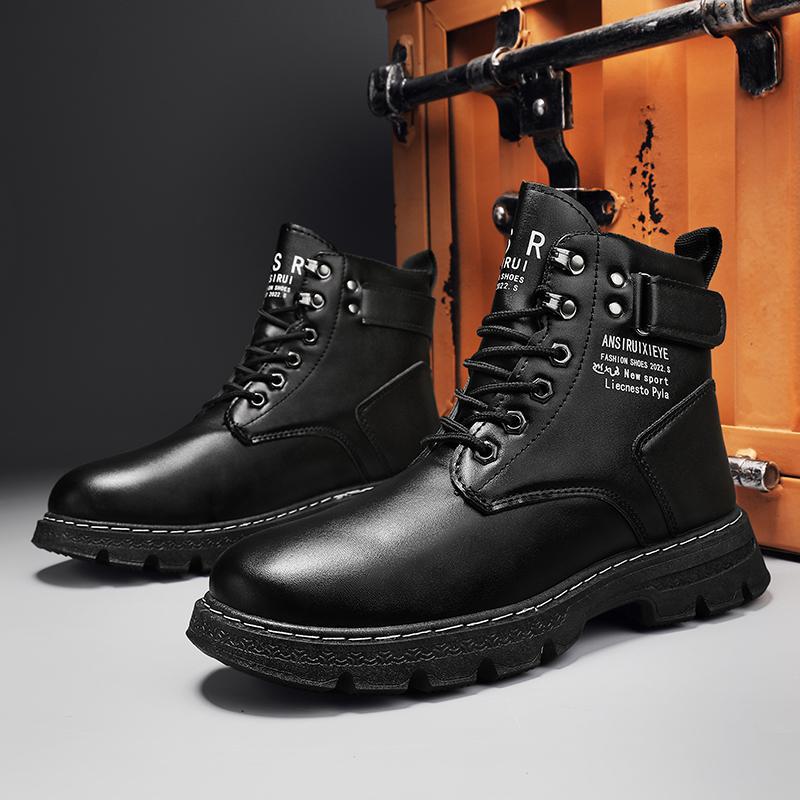 马丁靴男款秋季2022新款高帮英伦风黑色工装机车皮靴春秋休闲皮鞋
