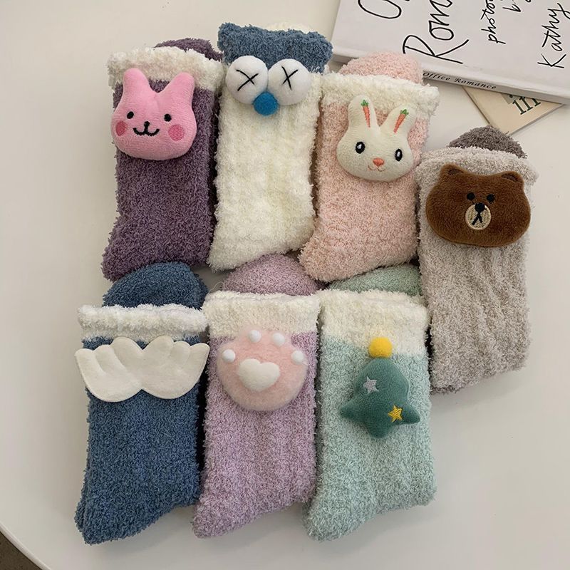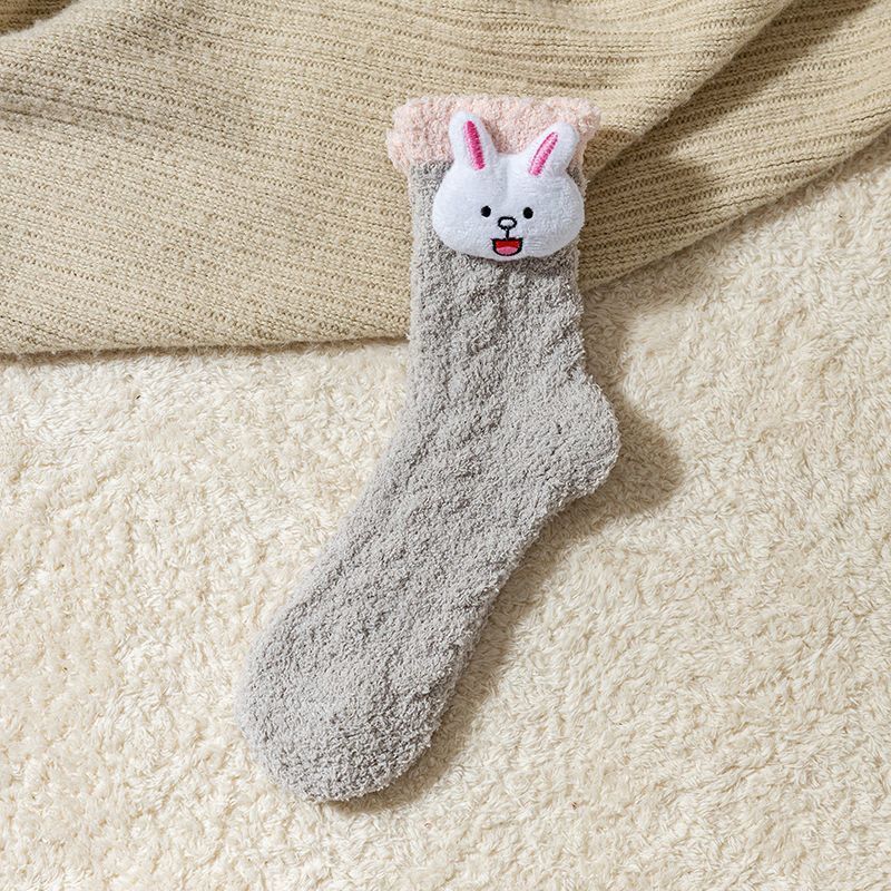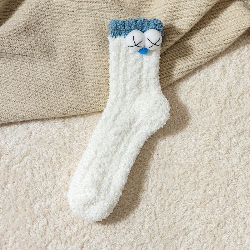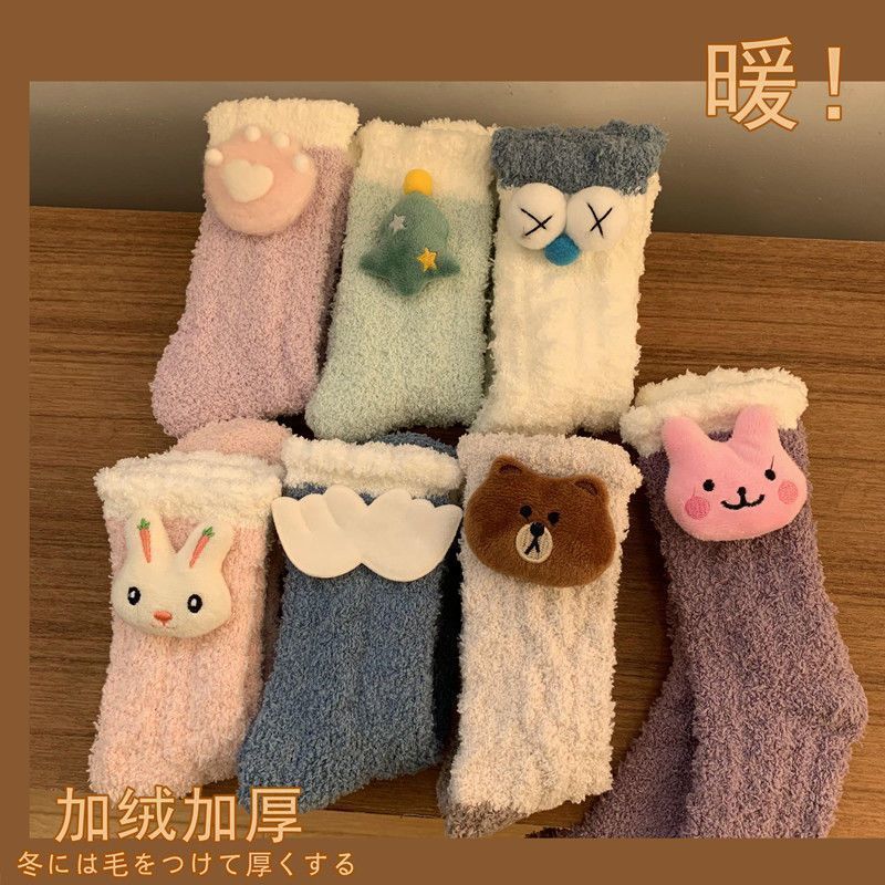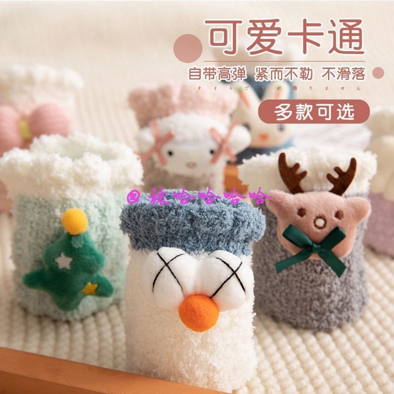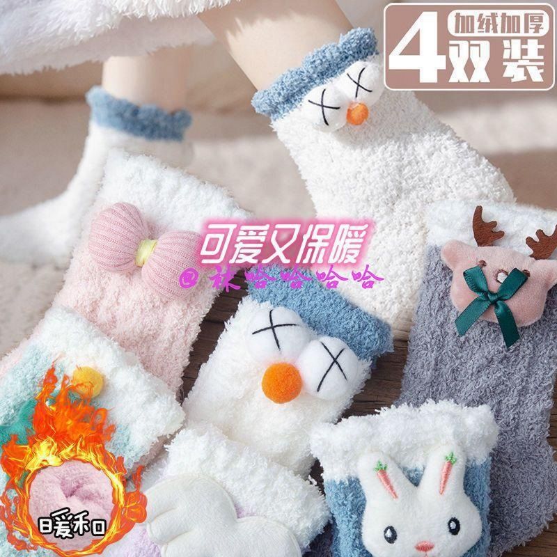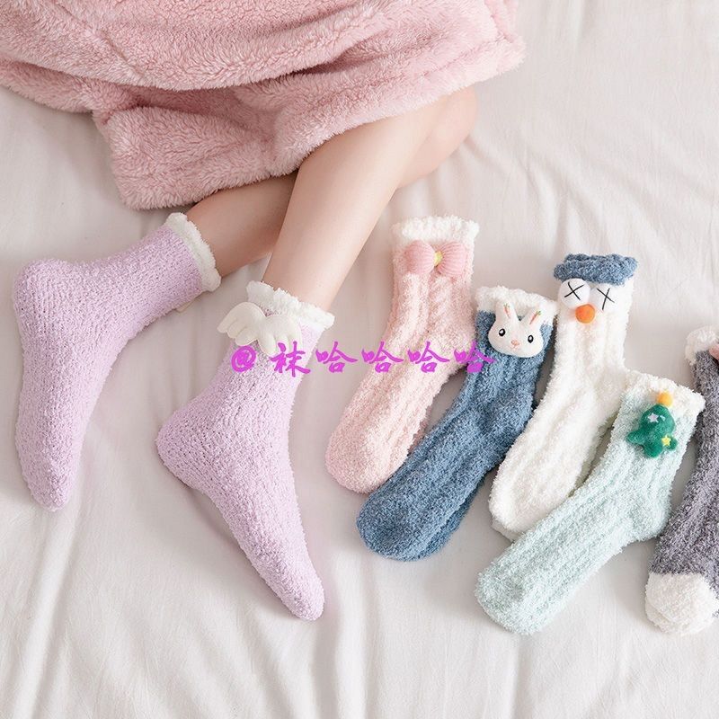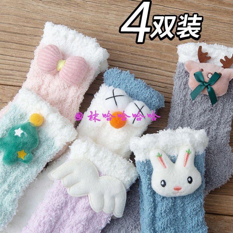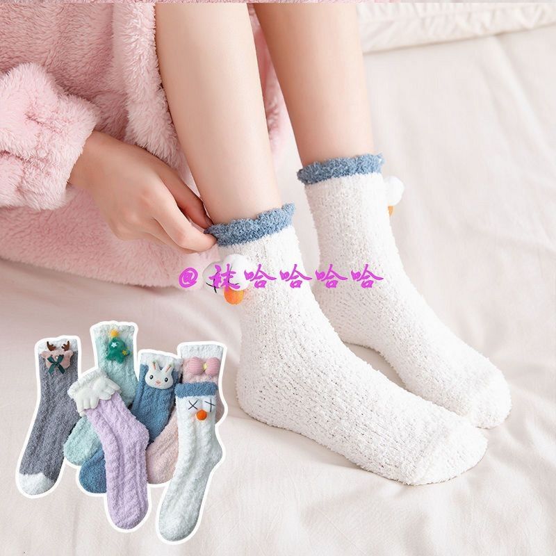 珊瑚绒袜子女秋冬季加绒加厚长筒睡眠袜中筒地板袜足部防护家居袜