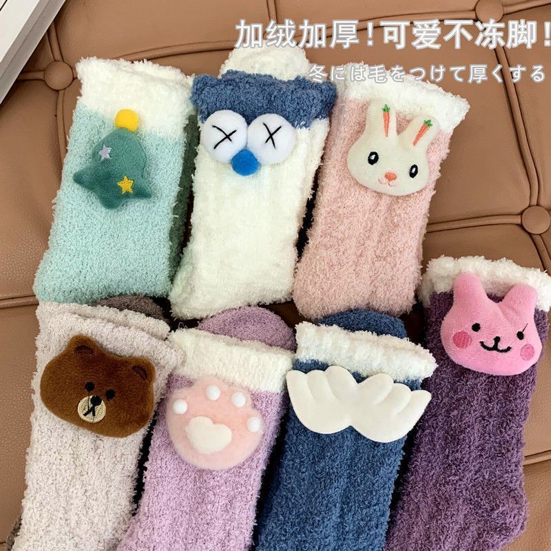 秋冬季保暖可爱珊瑚绒加厚中筒袜子女百搭日系ins卡通甜美长袜
