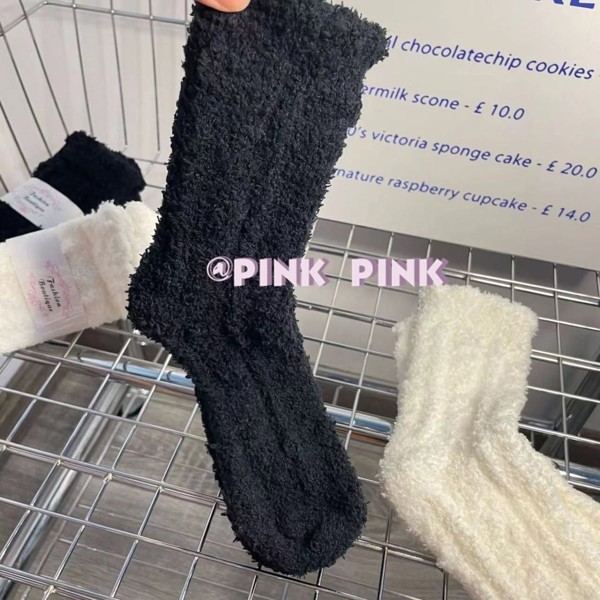 秋冬纯色麻花珊瑚绒袜子女加厚保暖居家少女防寒月子袜睡眠地板袜