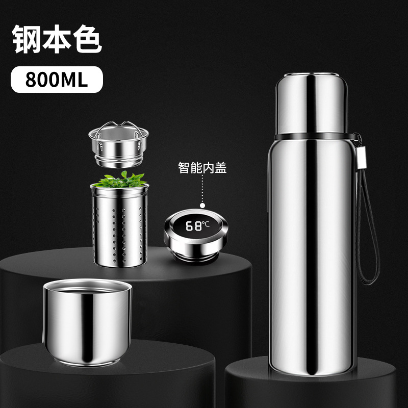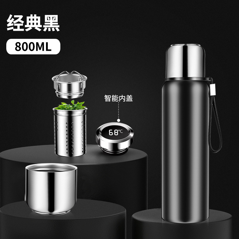 智能LED全钢304不锈钢保温杯男大容量泡茶测温水杯茶水分离礼品杯