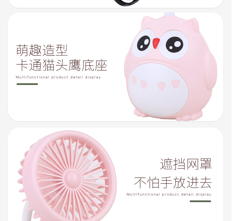22新品厂家直销猫头鹰多功能风扇带笔筒桌面USB充电风扇