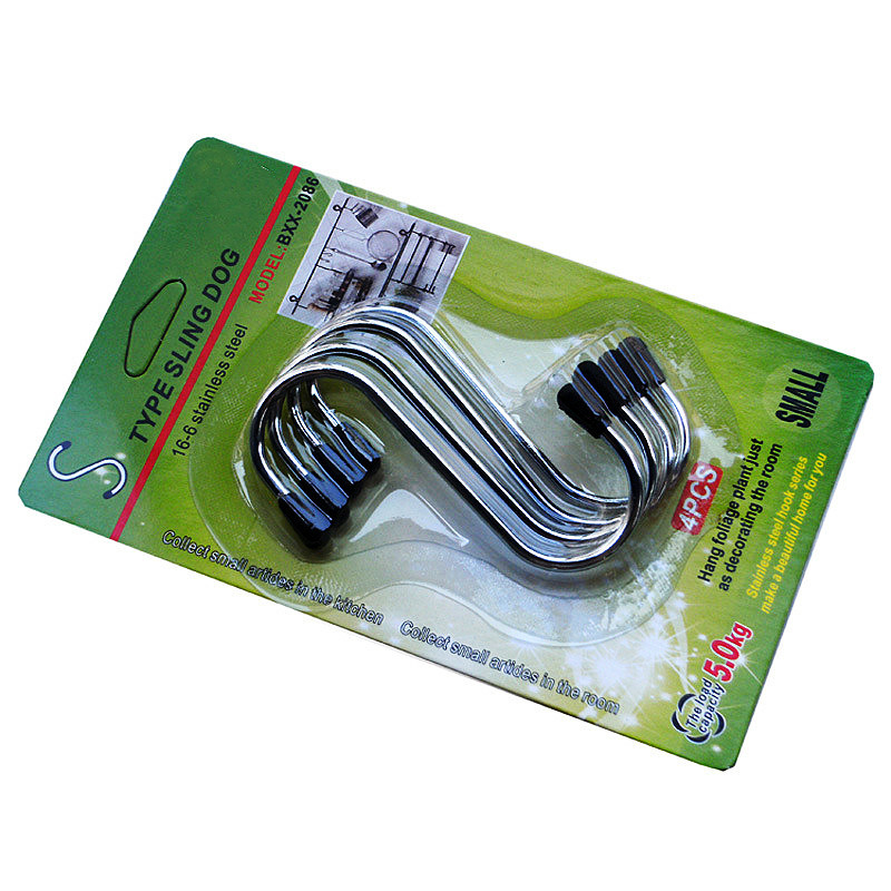 4个装S挂钩 不锈钢挂钩厨房收纳钩衣帽无痕挂钩便携门后实心挂钩