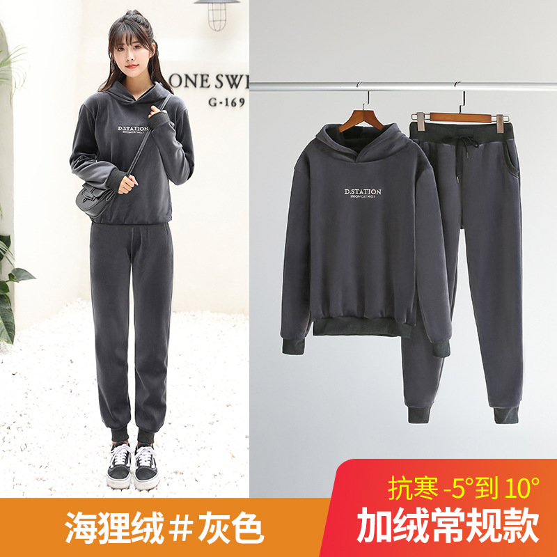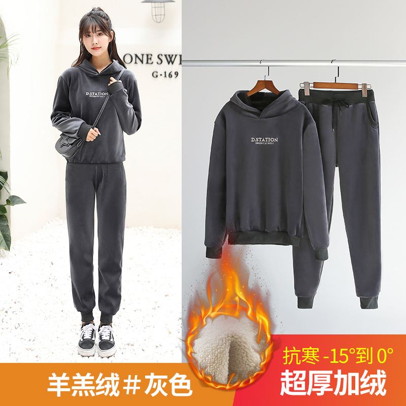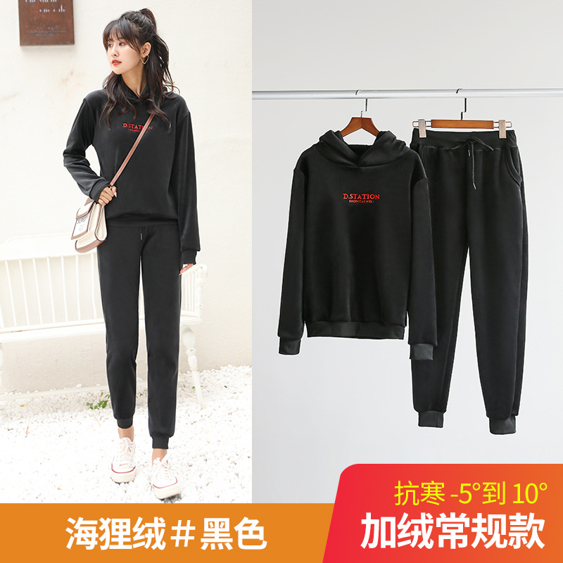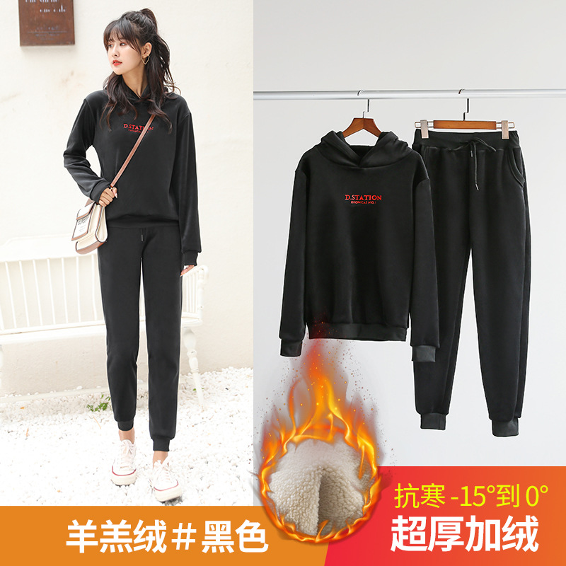 套装运动裤女秋冬季加绒加厚外穿保暖卫裤宽松束脚休闲裤子