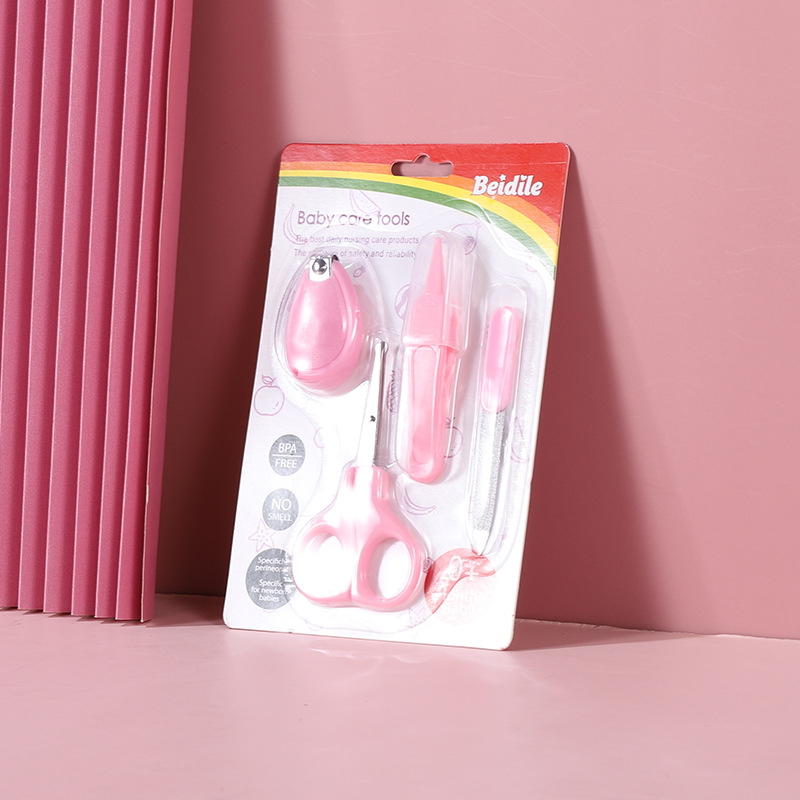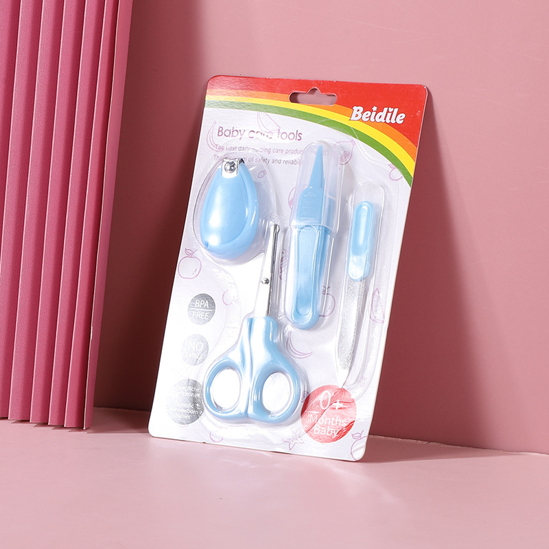 婴幼新生儿护理四件套装旅行便携式剪刀镊子指甲剪指甲锉吸卡
