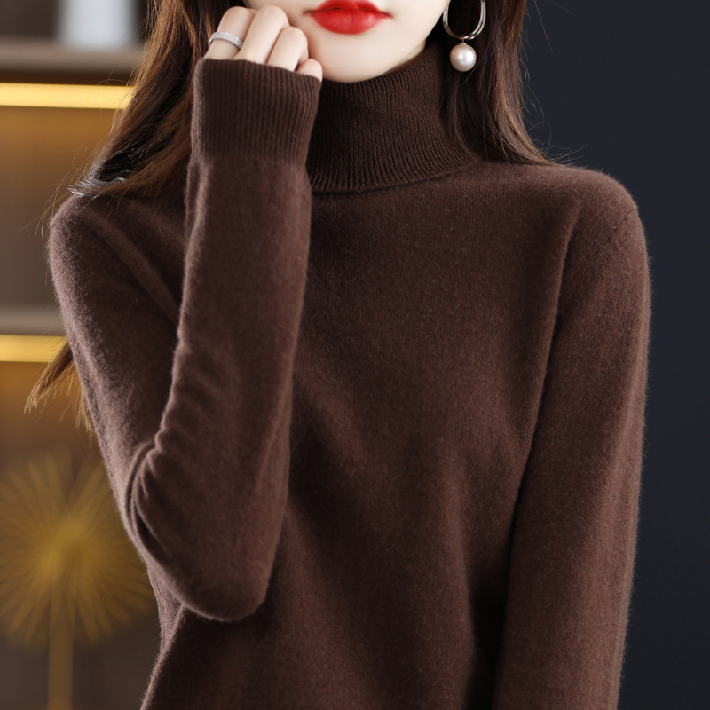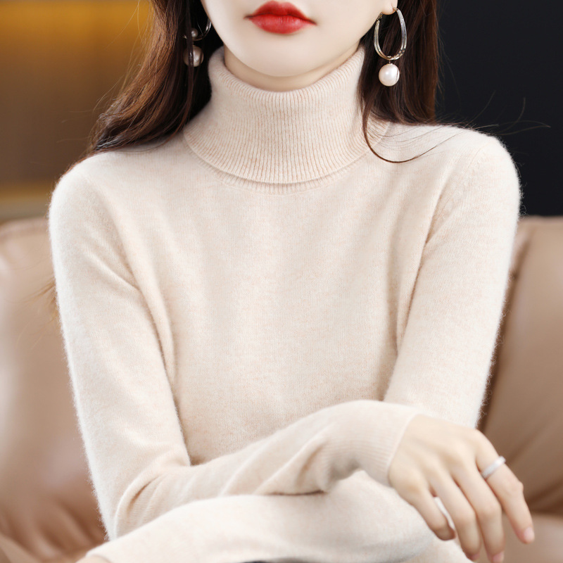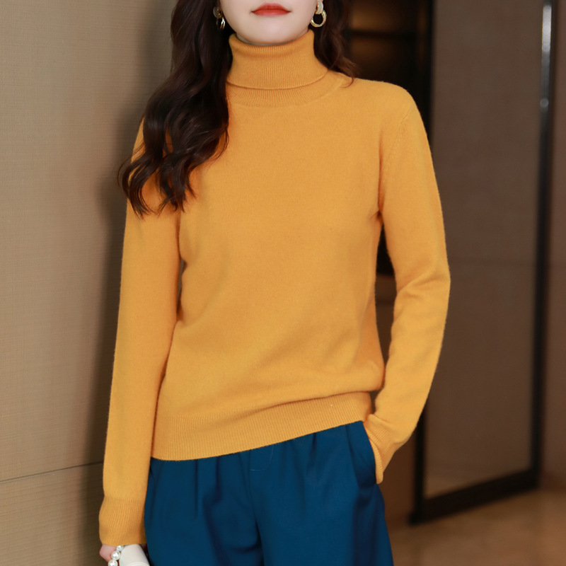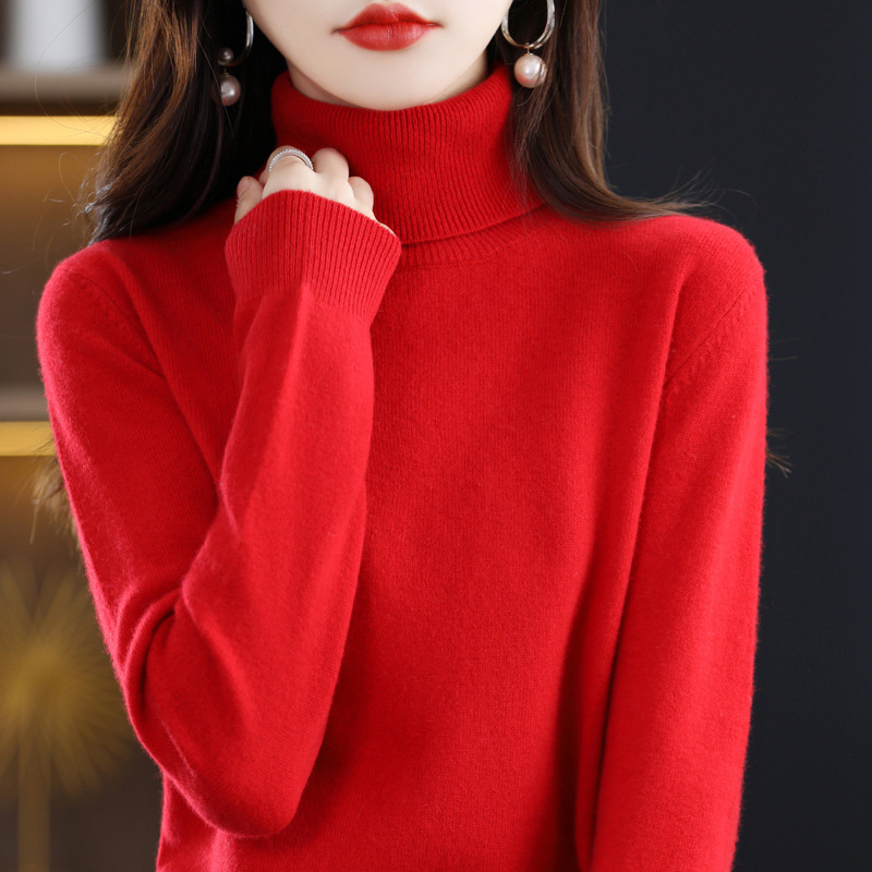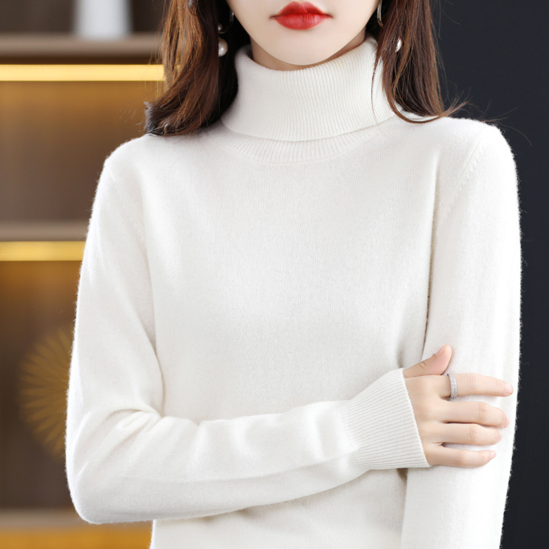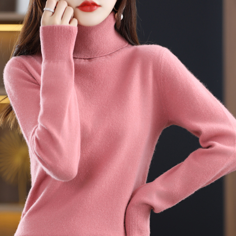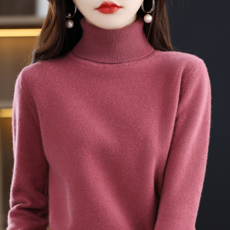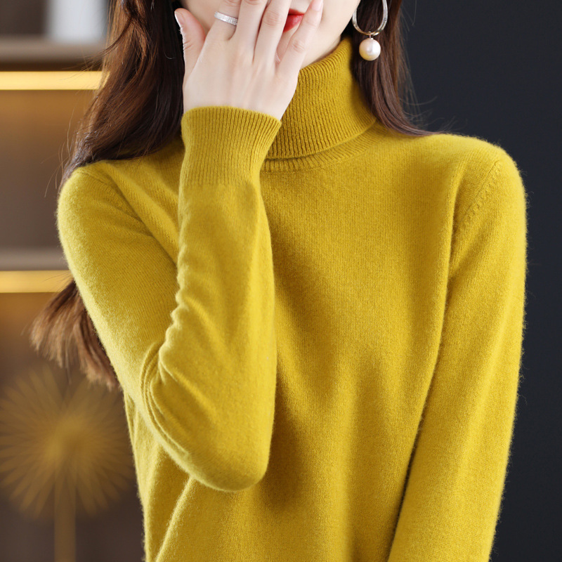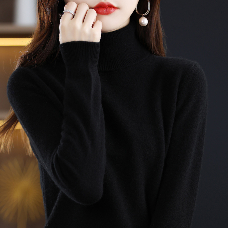 纯羊毛衫2022秋冬新款女高领套头纯色宽松短款羊绒针织衫打底毛衣
