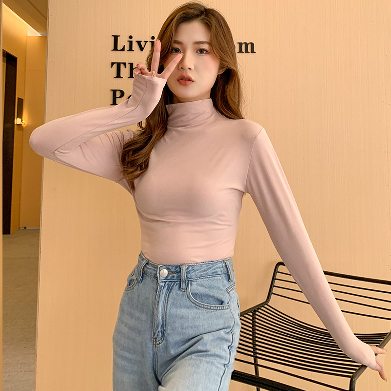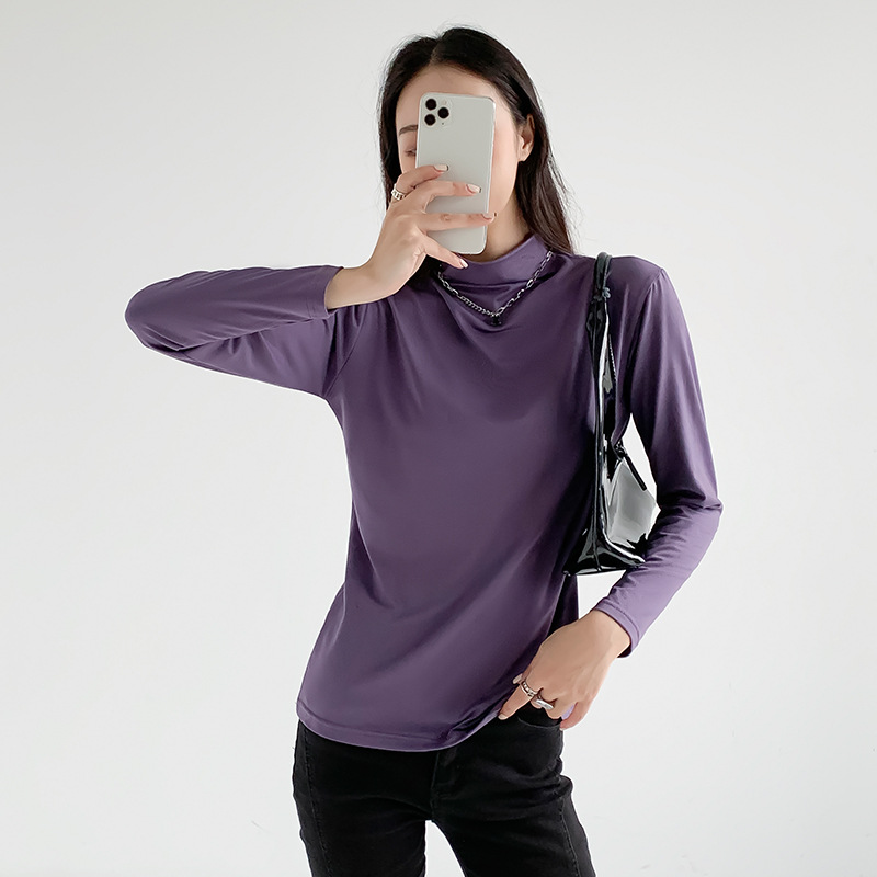 莫代尔打底衫女长袖t恤半高领春秋冬2022新黑色内搭洋气紧身上衣