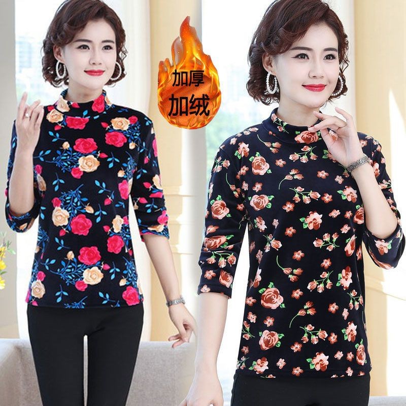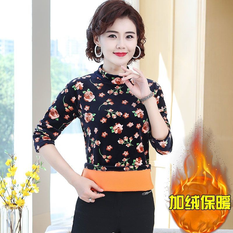 秋冬貂绒女装中老年人加绒打底衫妈妈装加厚秋衣妇女双面绒保暖衣