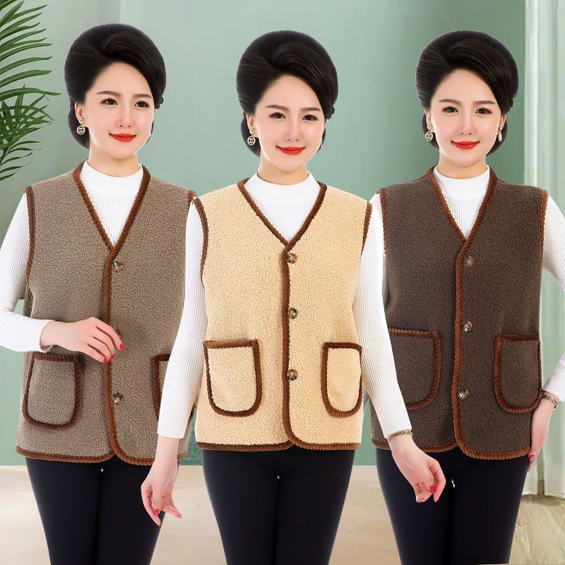 颗粒绒马甲女中老年妈妈装珊瑚绒秋冬外穿加绒保暖羊羔毛背心外套