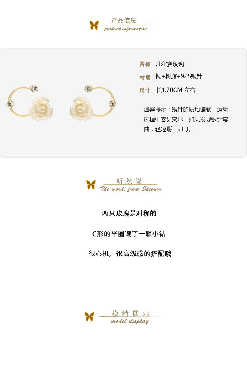 「凡尔赛玫瑰」复古法式轻奢花朵S925银针镶钻耳钉无耳洞耳夹女