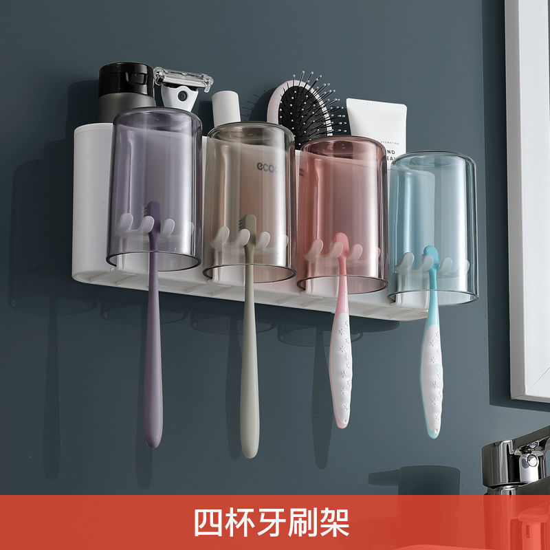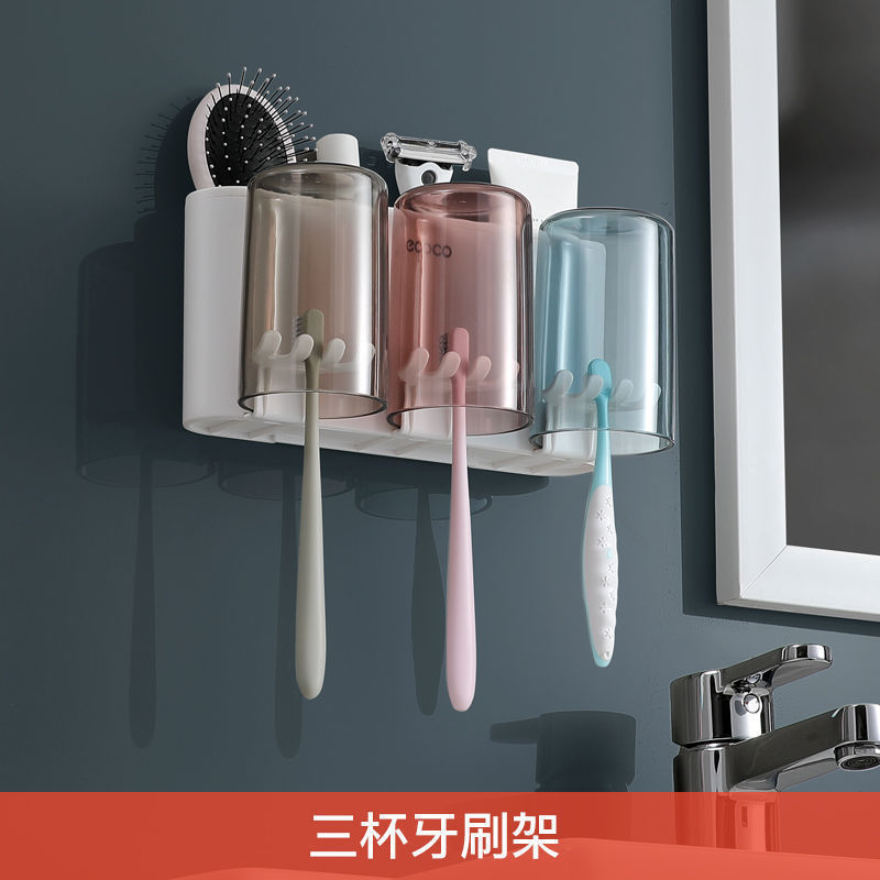 收纳盒牙缸套装牙刷置物架免打孔漱口杯刷牙杯挂墙式卫生间壁挂式