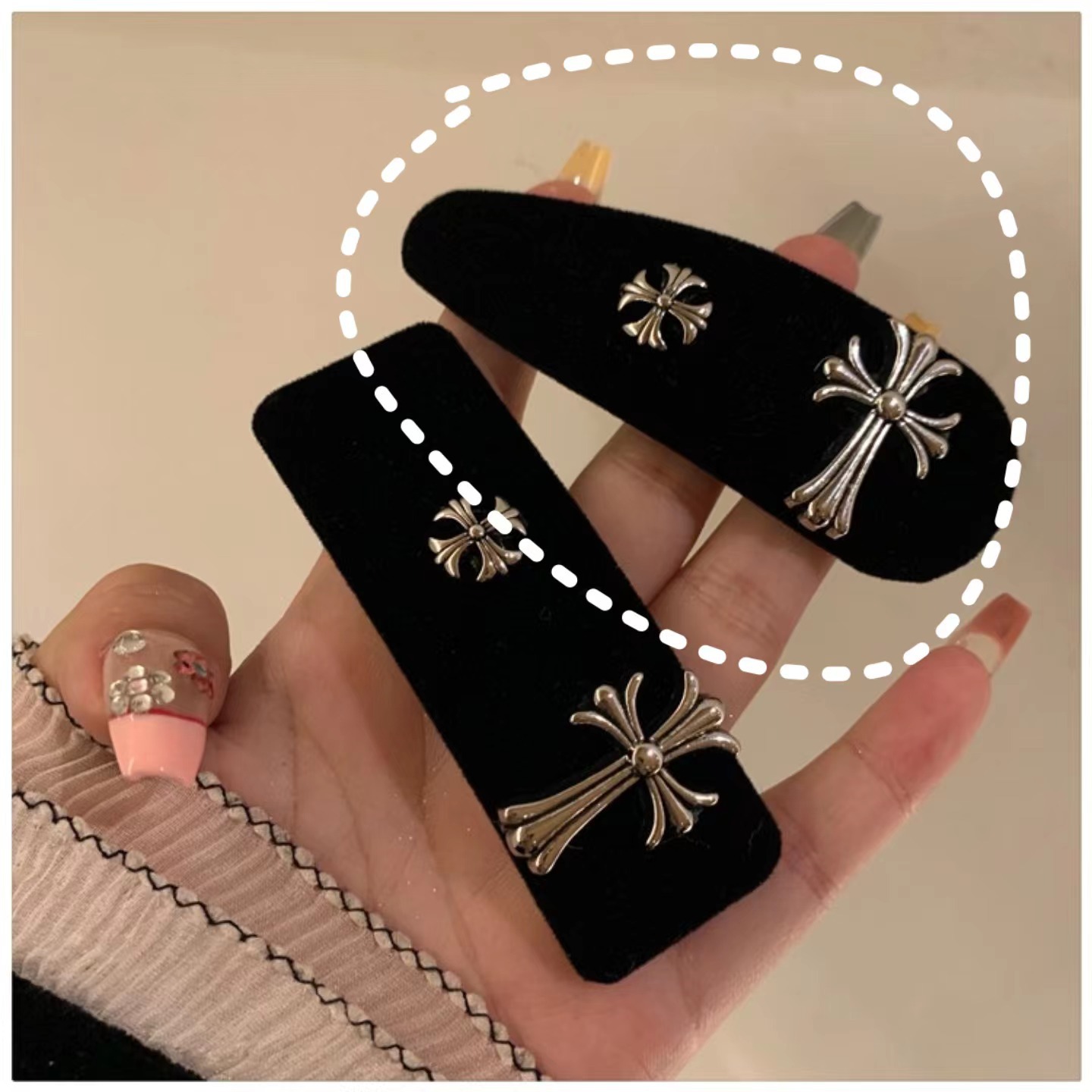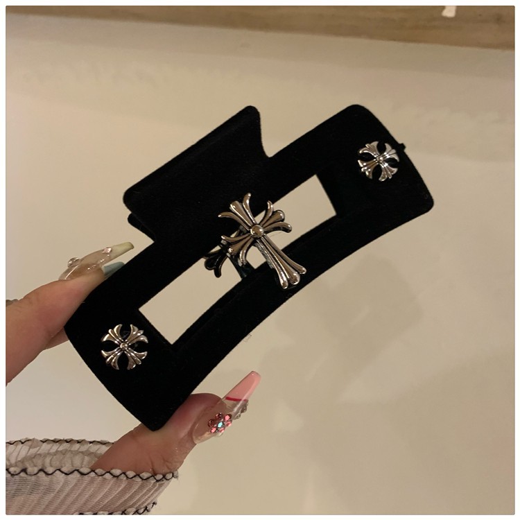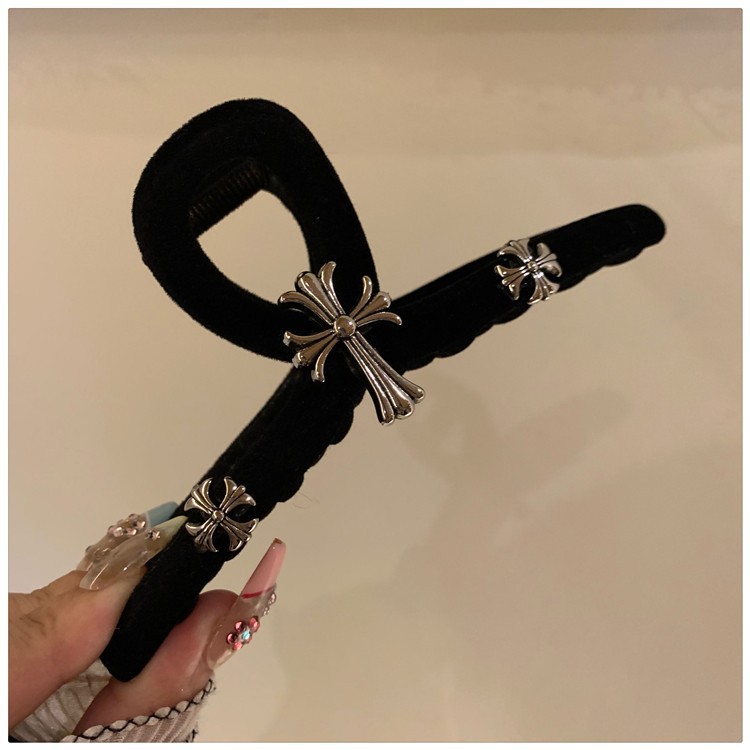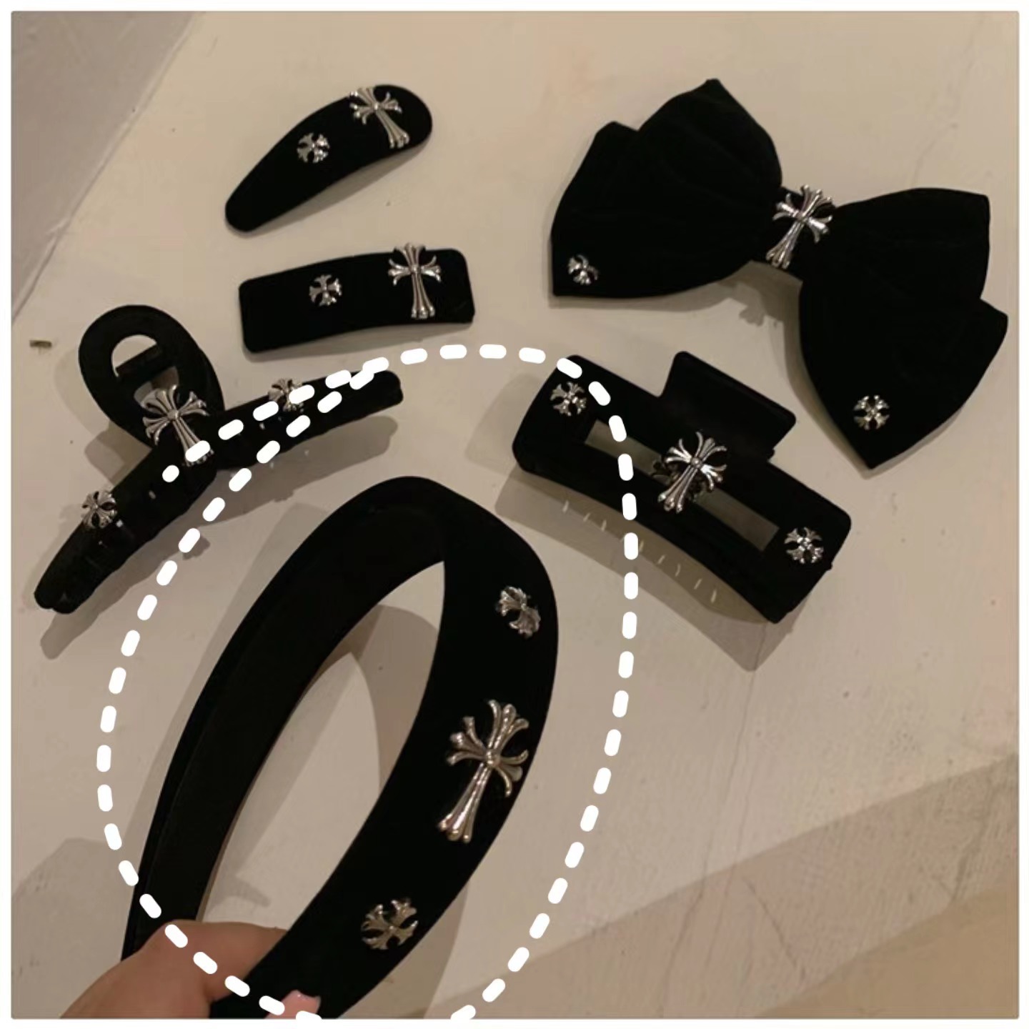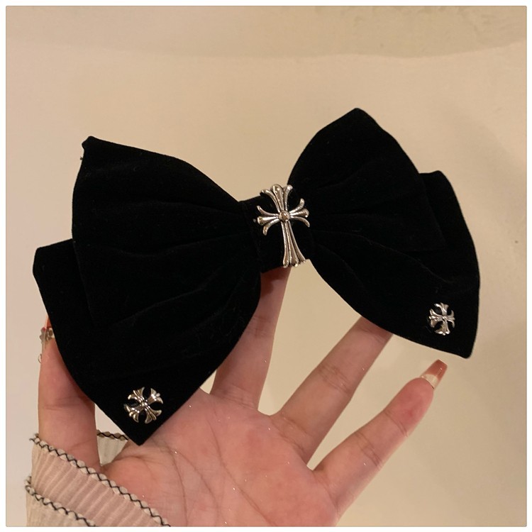 黑色丝绒十字架发夹系列~超大号抓夹小香风蝴蝶结暗黑潮酷发饰女