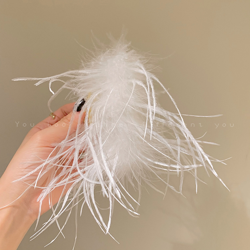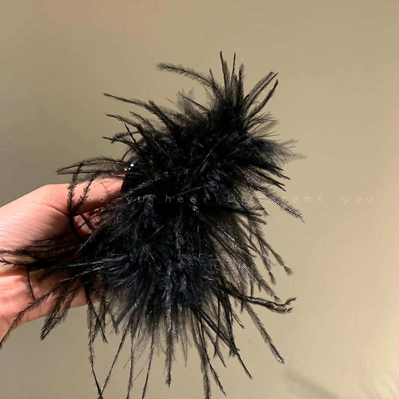纯欲风~超仙黑色羽毛抓夹女发量多后脑勺大号发夹网红气质鲨鱼夹
