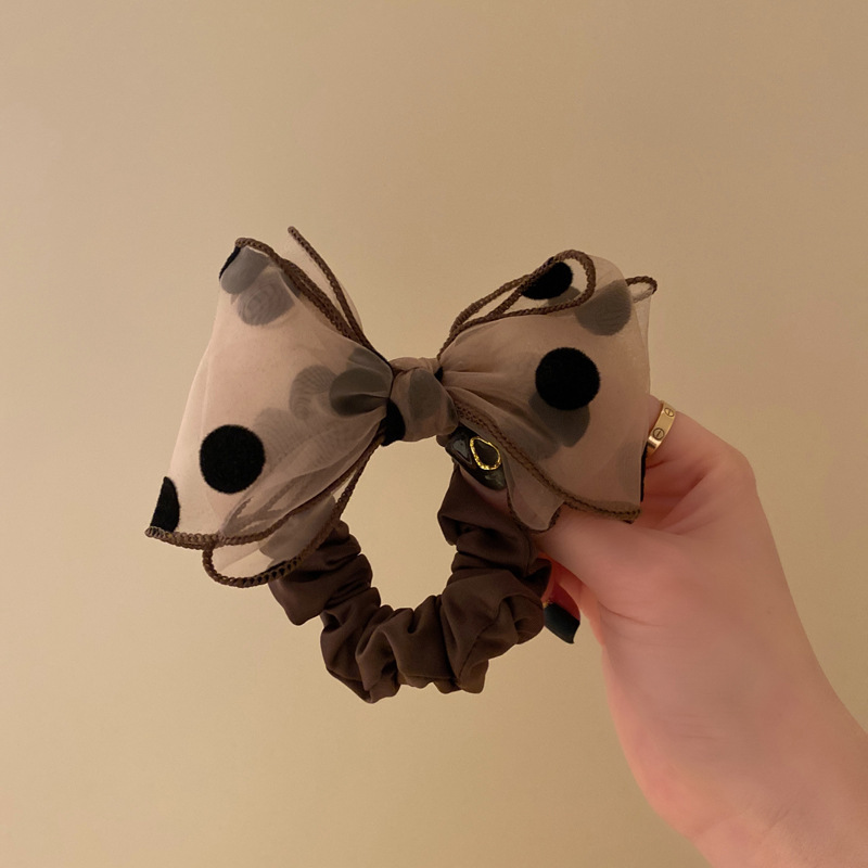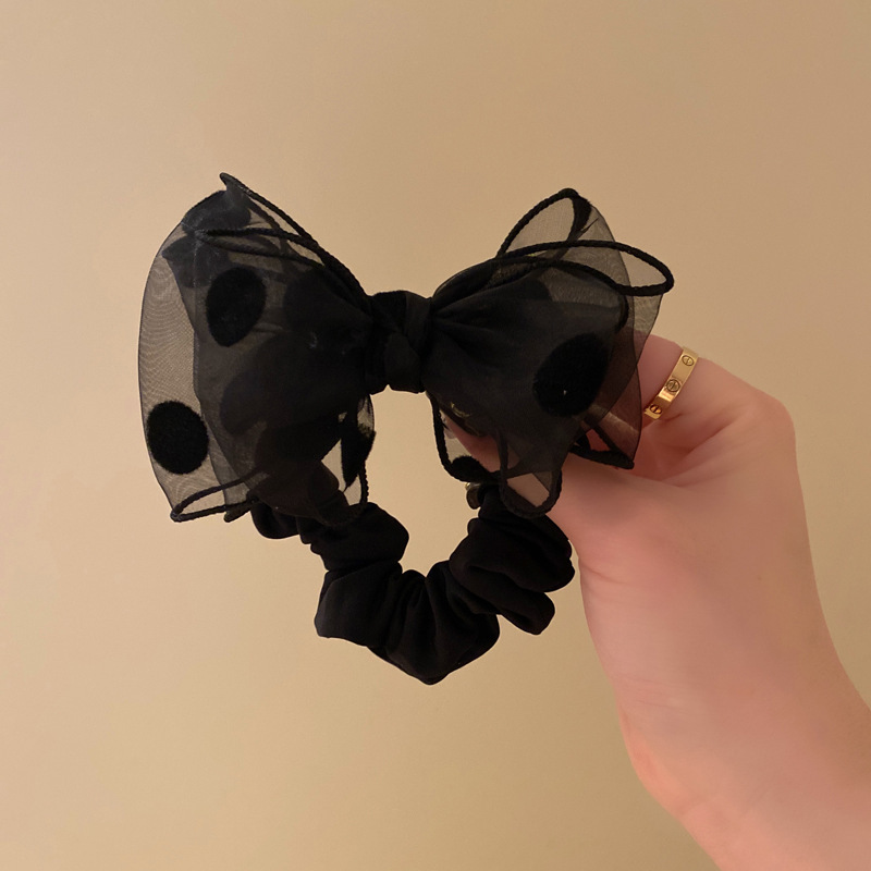 波点蝴蝶结发圈网红2022年新款欧根纱大肠圈高级感丸子头头饰头绳