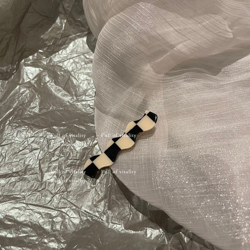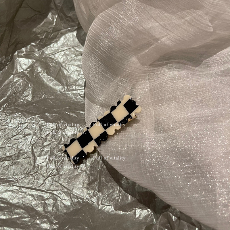 黑白棋盘格少女复古亚克力刘海发夹碎发美妆面膜鸭嘴边夹发饰