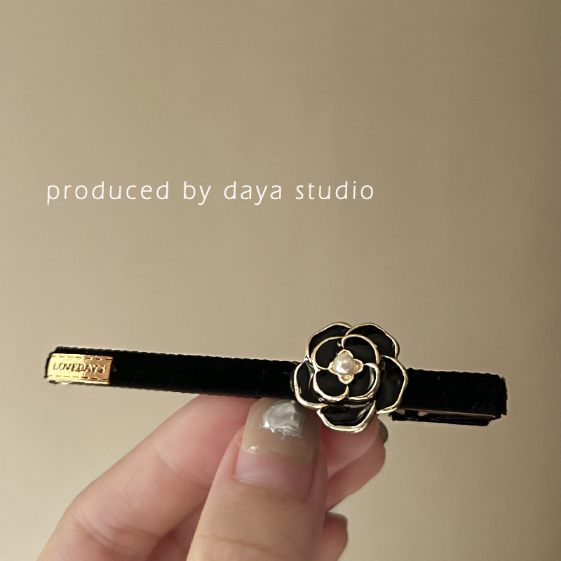 精致法式复古滴油山茶花朵珍珠丝绒发夹小香风轻奢高级感设计边夹