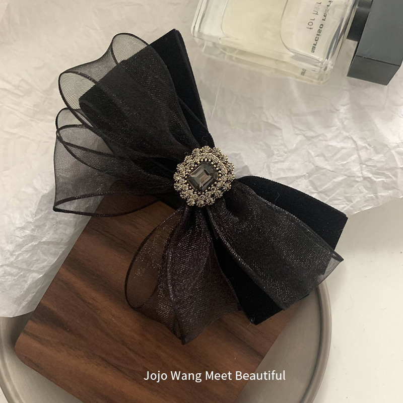 整个美住蝴蝶结头饰发夹丝绒法式高级感刘海夹质感欧根纱韩国