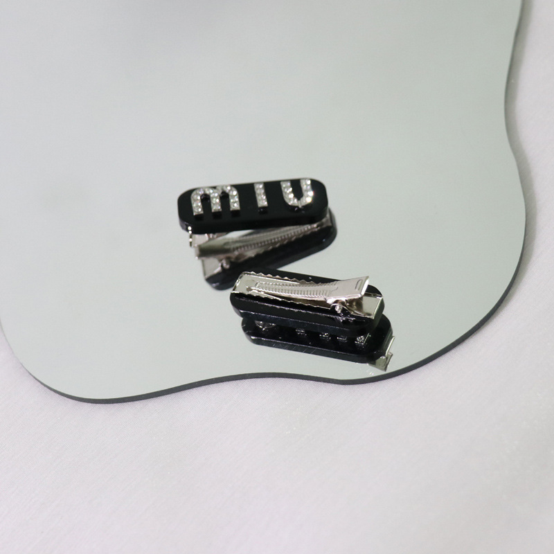 韩国网红时尚复古玳瑁醋酸闪钻字母发夹高级感珍珠MIU字母边夹