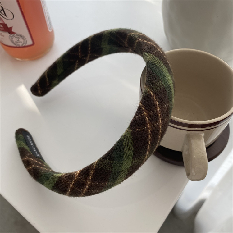 韩国复古格子发箍女秋冬百搭气质压发外出宽边高颅顶头箍发卡头饰