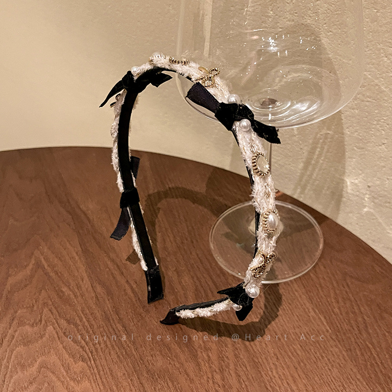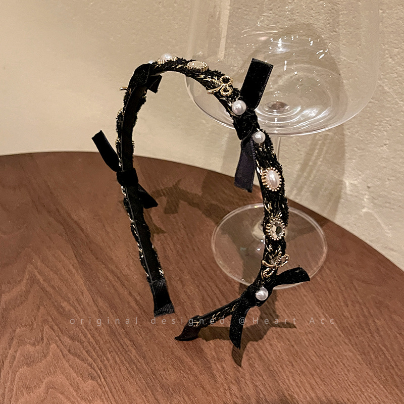 黑色珍珠锆石丝绒发箍女秋冬2022年新款网红发饰百搭外出简约头箍