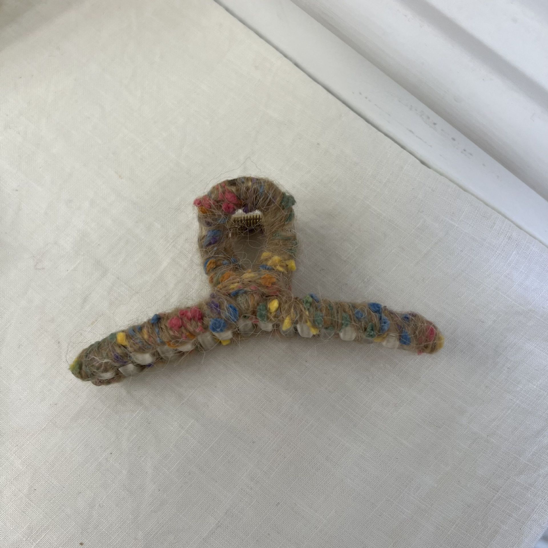 秋冬手工钩针毛线缠绕抓夹大号复古混色后脑勺盘发鲨鱼夹气质发抓