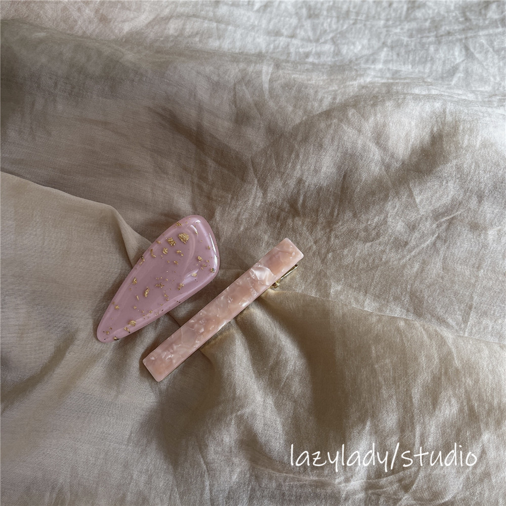 2件套~韩版INS气质琥珀粉色鸭嘴夹刘海夹碎发夹发卡边夹发 饰头饰