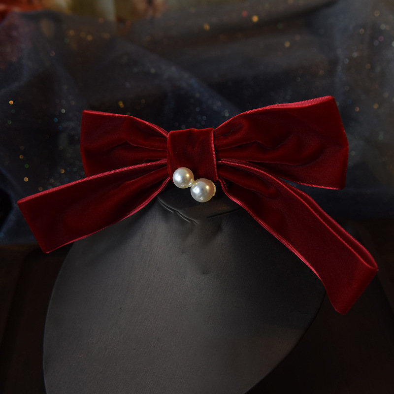 新款复古黑色丝绒蝴蝶结发夹发饰法式气质新娘头饰写真造型配饰
