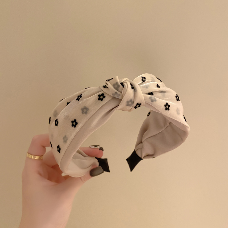简约宽边网纱发箍网红2022年新款高级感ins花朵打结压发头箍女夏