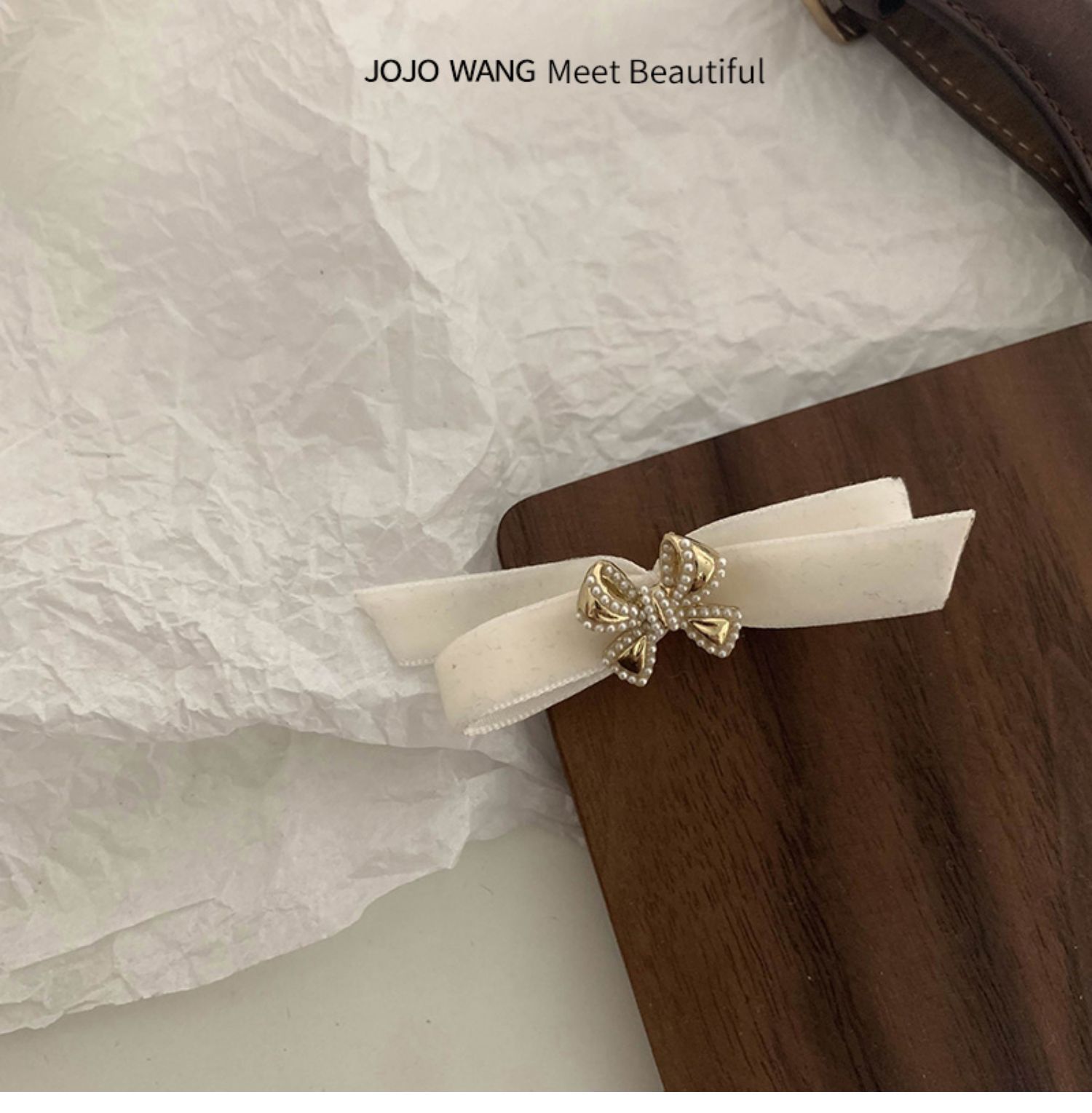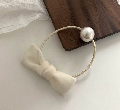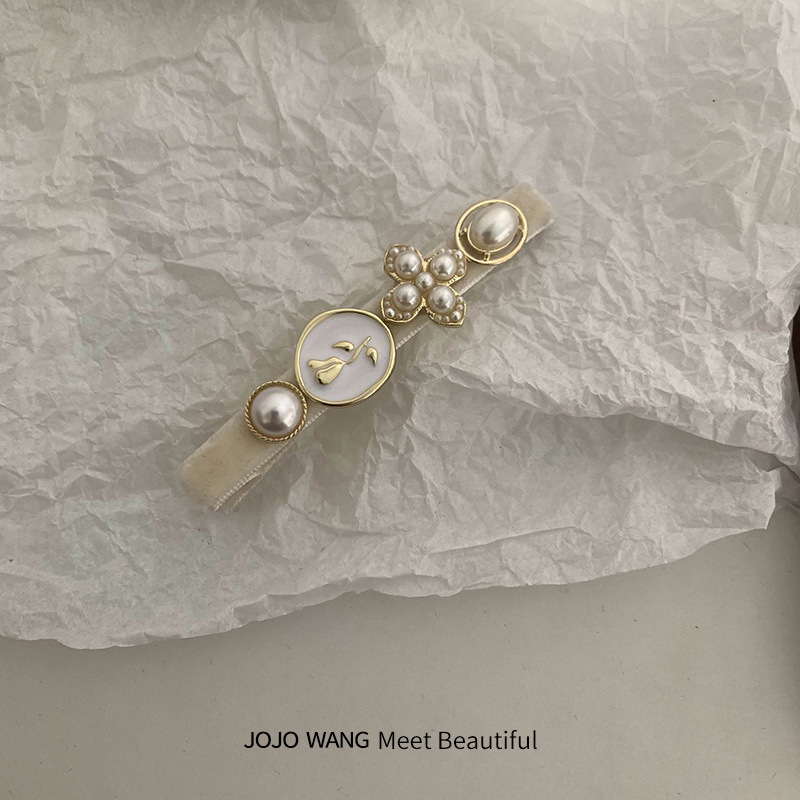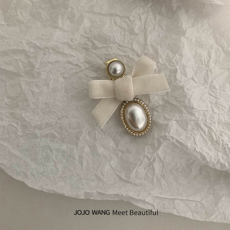 奶白艺术生~蝴蝶结丝绒小香风珍珠发夹女高级感刘海夹气质侧边夹