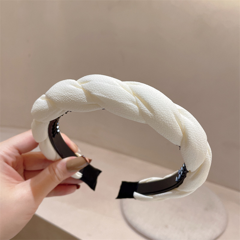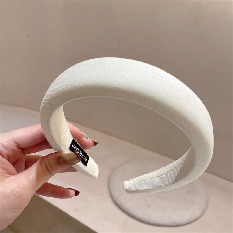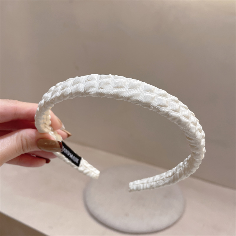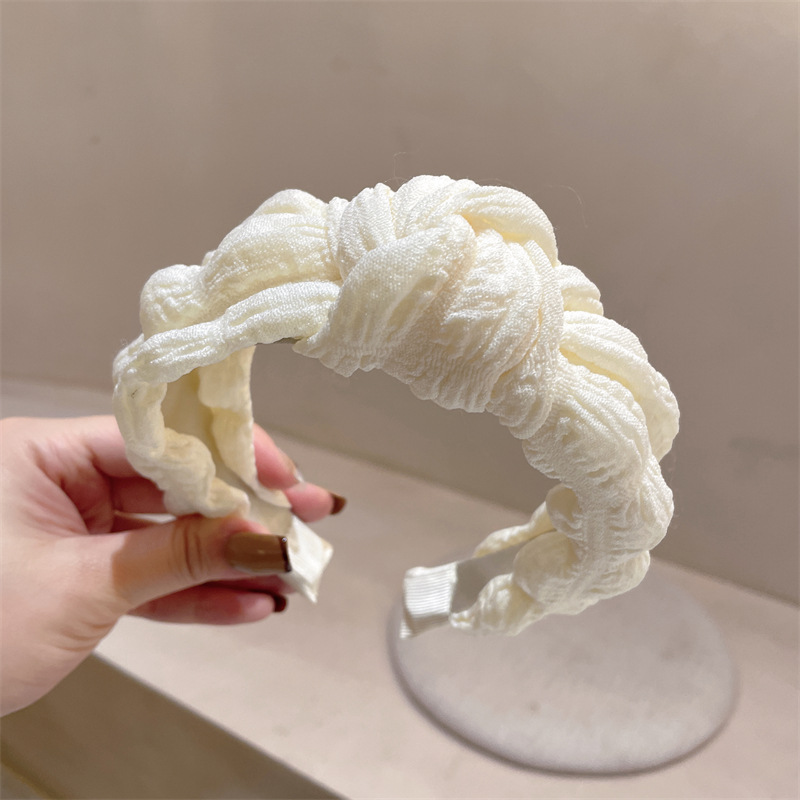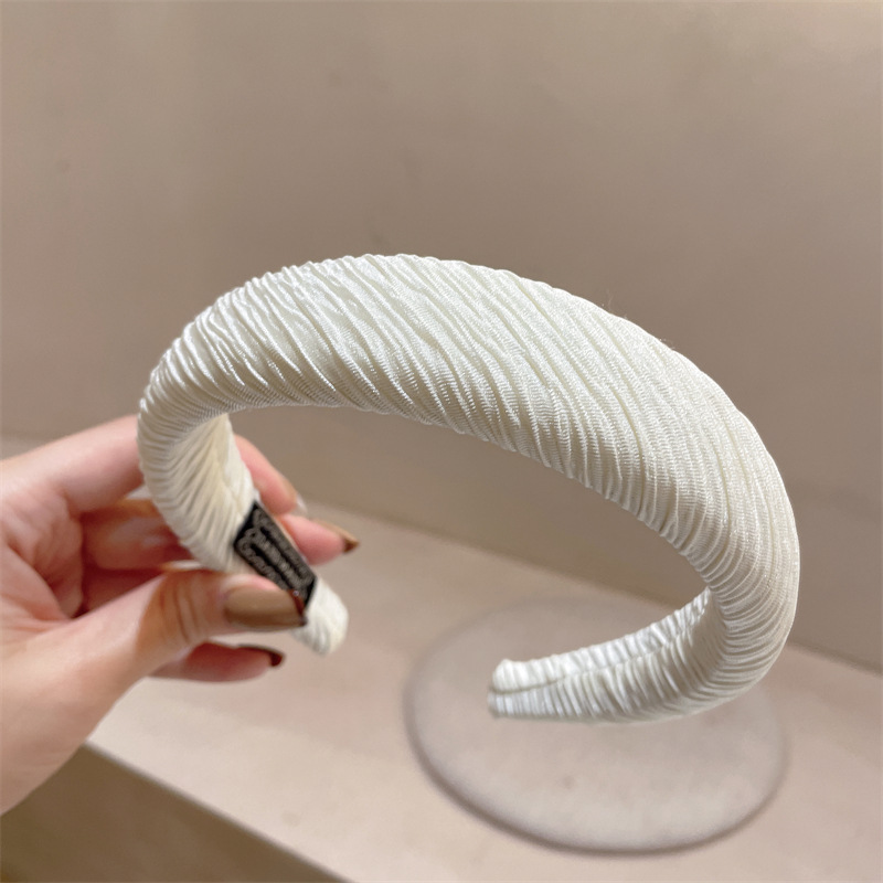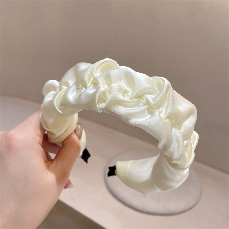 韩国东大门2022新款奶白色米色小香风发箍蕾丝珍珠褶皱高颅顶头箍