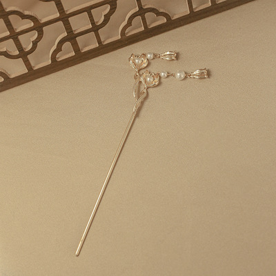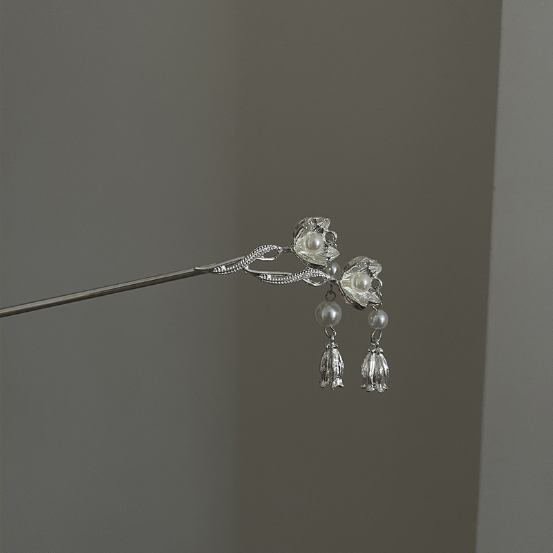 汉服中式发簪古风高级感盘发发钗鸢尾花铃兰簪子珍珠花朵流苏钗子